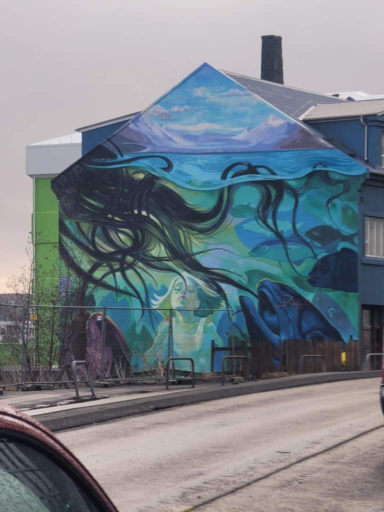 Day 1: After we arrived safely at the airport (thank God), we snagged a few small bottles of liquor from the duty free shop and waited for the public bus into Reykjavik. We walked outside near the airport and caught the bus which was a good hour ride (I didn’t realize the public bus would take us into town so I’m glad Kassandra knew that as that saved us some money). The ride was very relaxing and daylight was slowly and beautifully creeping in with the hues of blues in the sky as we rode along the coastline for half the ride. We ended up missing our stop by about 2 stops and just walked the rest of the way (22 mins) to the hotel. The weather was surprisingly not bad outside as temps were in the mid 40’s with a light drizzle and occasional wind. We weren’t able to check in yet as it was too early but we were able to leave our luggage in the luggage room. We found out where breakfast was being served and grabbed a plate and sat down (by now it was about 8:30am). Breakfast was delicious so we ate and talked. We probably talked a little too much because we were rushing to get to our Free City Walk Tour at 10:30am and had to end up getting a cab there. We were able to join the group when we arrived as Andy (the guide) was just getting started.