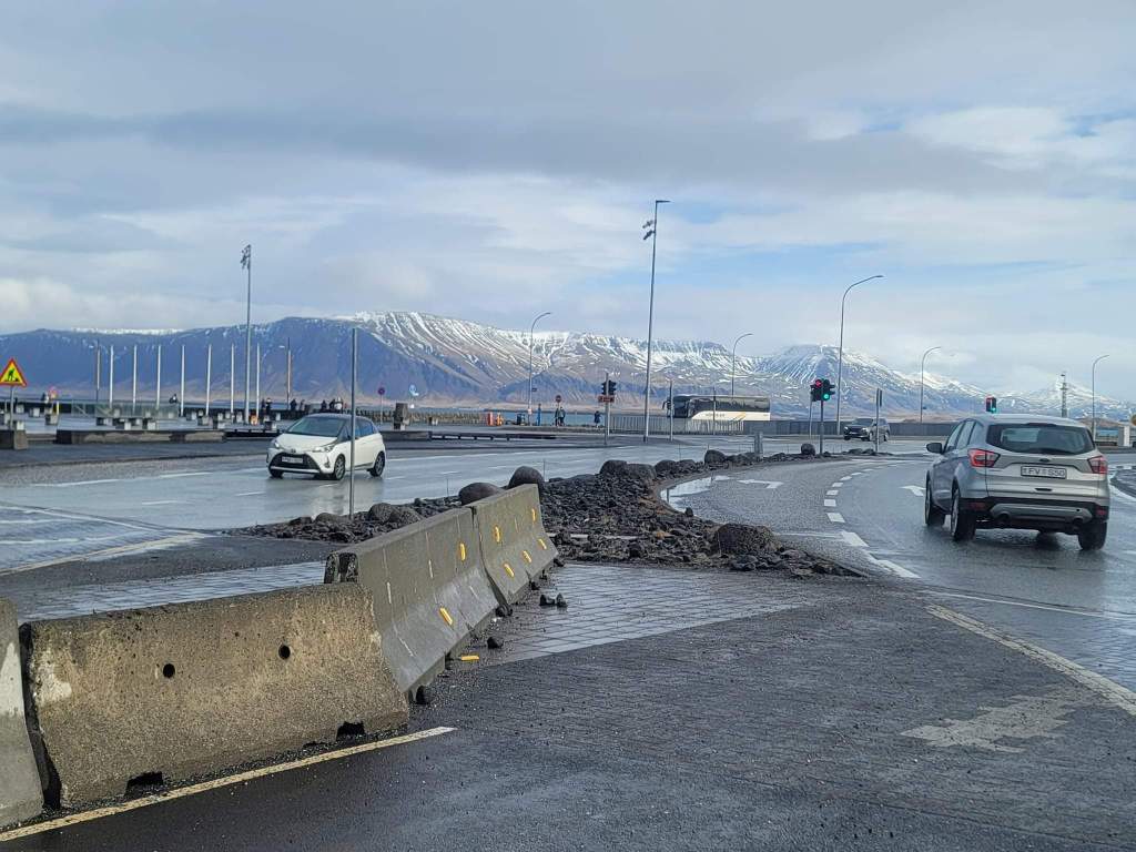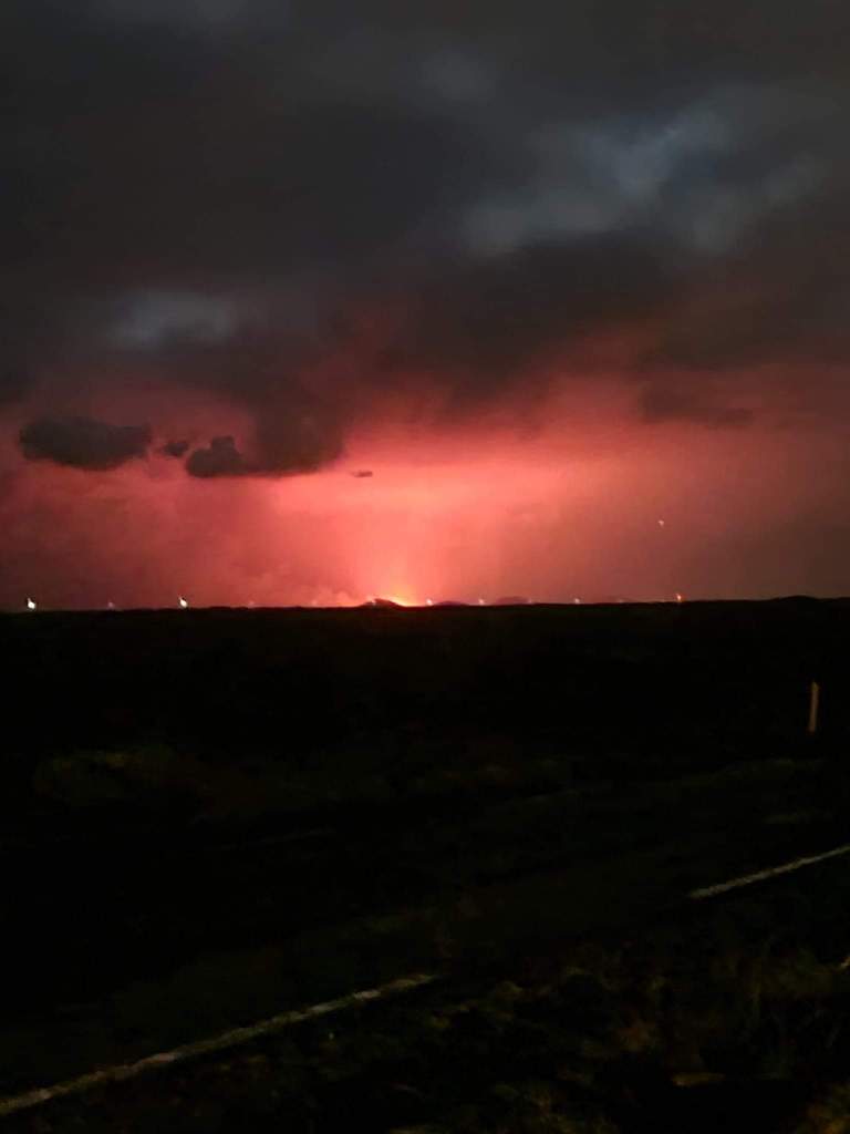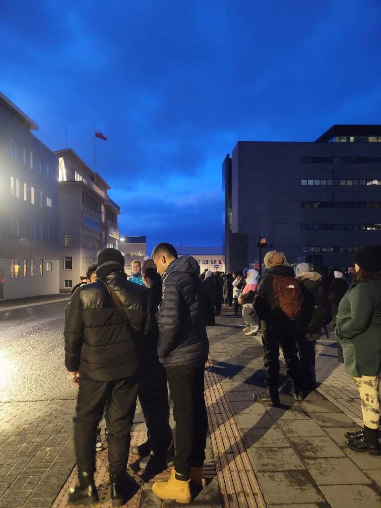 We opted to take the public bus back to the hotel since we had time and by now it had begun to rain harder. We made our way, checked in, got our luggage and settled down. I ate the rest of a burrito that I bought from home while Kassandra made her ramen. With only 2 hrs of sleep since yesterday, I got started on this post and Kassandra took a quick nap. We still had the Northern Lights tonight… We were to meet at bus stop 12 by 8:30pm to be picked up to see the Northern Lights Tour. There was a crowd of people waiting so we knew we were in the right place. Thank goodness it didn’t take them long to arrive because the temperature significantly dropped and the wind picked up. Once we were settled on the bus on the way I went to sleep. I woke up and it looked as though we were in the middle of nowhere (to be expected because you drive out). Our guide had the bus stop so we could see the volcano eruption in the distance. We stopped and took pictures and then continued on our way.