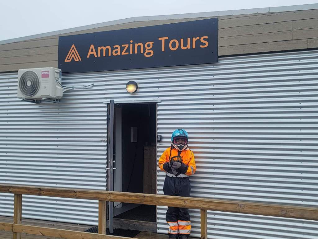 There’s something called gaits that all horses have naturally and that includes: walk, trot and canter/gallop. With an Icelandic horse you can add tölt and flying pace to the list. Icelanders are offended if you call them ponies because they are horses. After feeding the horses we headed to basecamp. Once at basecamp, we stopped in the area where they had toilets and could grab a bite to eat before the activity began. No one opted for anything just yet and I sat and talked to the other 2 girls that were on the van with us. One girl was from Doha, Qatar and the other from Chihuahua, Mexico.