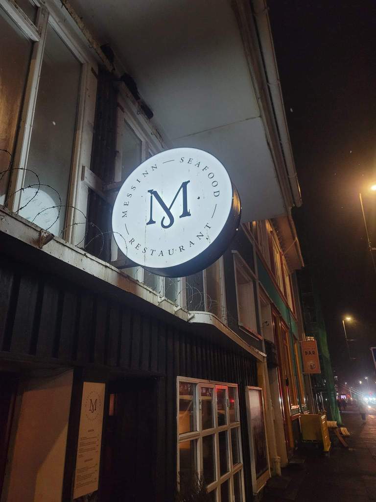 We got into Reykjavik around 6:50pm so it definitely made more sense to be near downtown. We got off and went to an art museum which honestly by the end of it I was thinking, “What did I just see?” We stopped to get our hotdog and though it was good I think that it’s overrated (I wouldn’t get another one but I was glad to try it). Just around the corner was Messin a small, quaint yet busy place (I can see why you need a reservation). We were seated and ordered. We both enjoyed our meals and had enough leftovers to take home. We walked from the restaurant to the hotel which was a good 24 minute walk and along the way we browsed into closed store windows, open stores and restaurants as the snow fell and the wind blew us every which way.