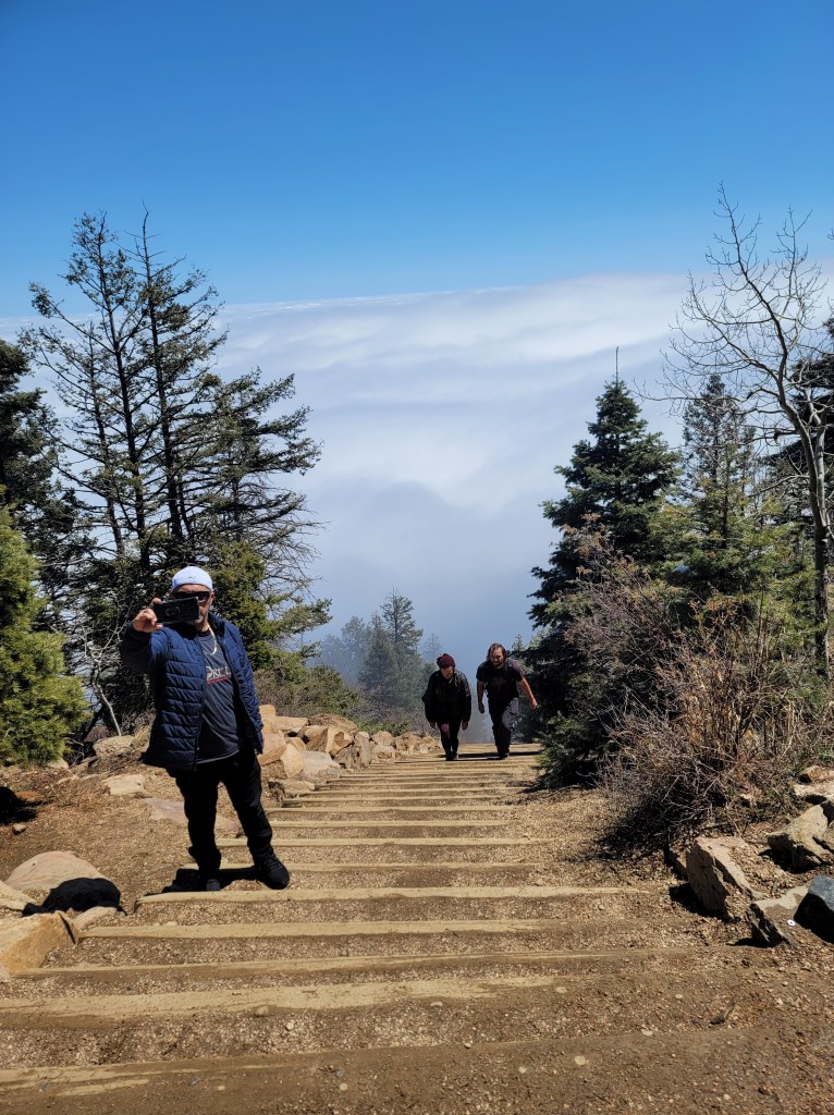 On my way up I listened to Sunday service and when that ended my Spotify. I met people along the way and we chatted when we stopped and encouraged each other along. I lugged with me a tote bag of snacks and water which definitely came in handy. The hardest part of the climb were the steep steps and the steps that were so small that I found myself climbing up those as to make sure I wouldn’t fall. I didn’t like those as I recall my knees and legs shaking at one point because that portion was out of my comfort zone.