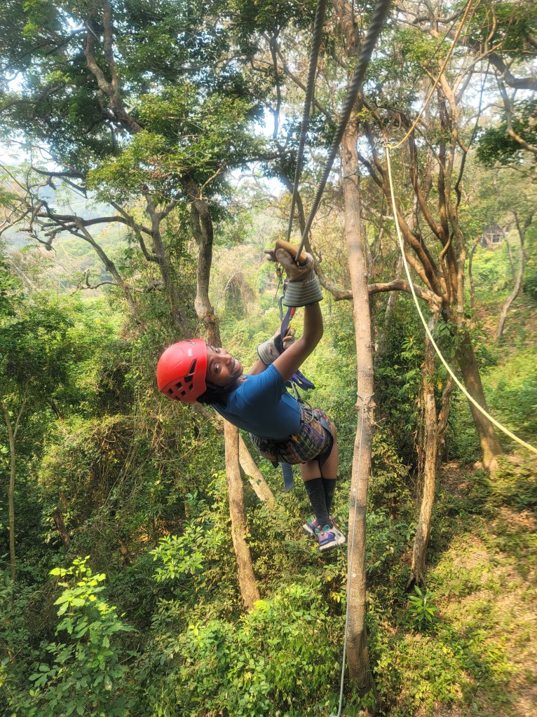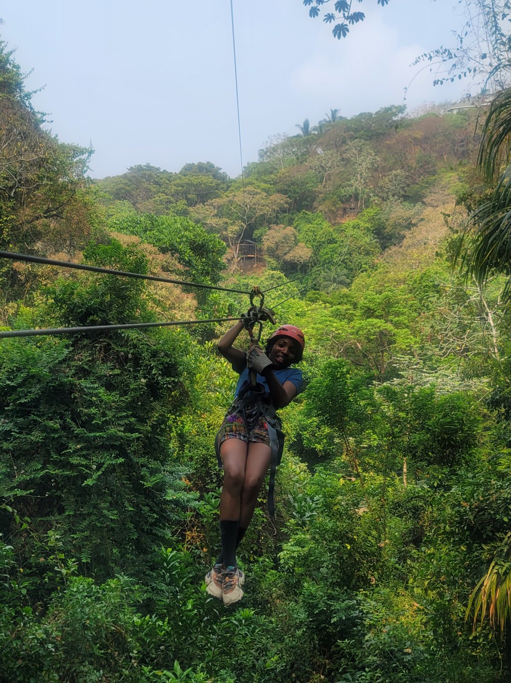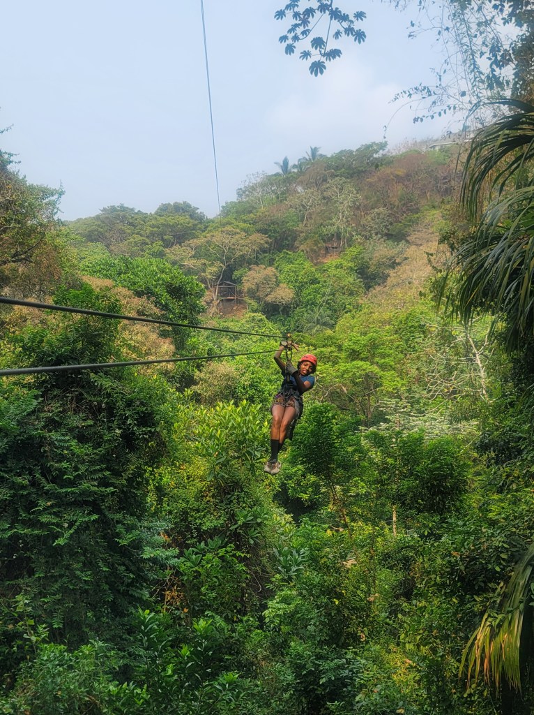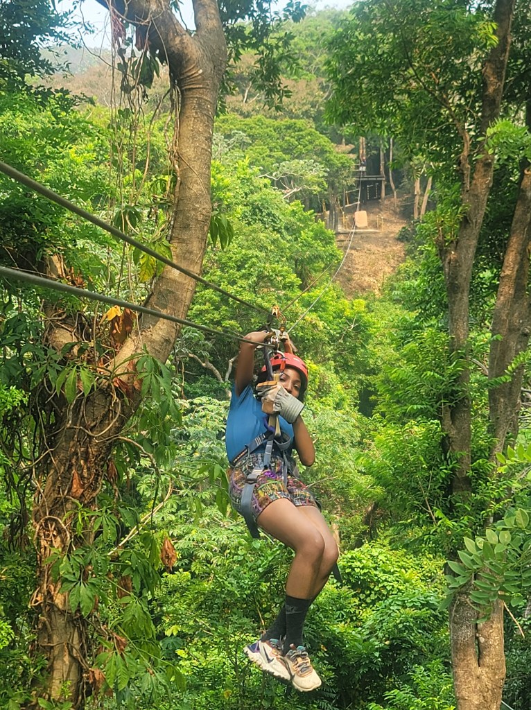 I put my things in a locker, got my protective gear and was guided to where we would begin. I was given a brief demonstration by Alvin and Kevin as they showed me the different controls. Luckily I had ziplined before even though it was over 10 years ago I don’t remember it being difficult. We did a test run first and all went well so we kept going. Line after line we went. Some were long, some dipped low, all of them were high (lol) but the main focus was to let yourself go as fast as possible until you get very close to the end and then you brake yourself. If you do like I did at one point and brake yourself too early then you will have to pull yourself in by turning backwards and using your arms.