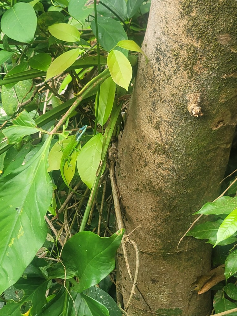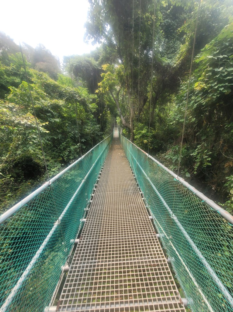 Apparently people eat iguanas here (Kevin had said it’s better than chicken which I in turn said, “No thanks”). Interestingly enough though apparently it’s illegal and so if you want iguana you have to say “pick chicken” and some people will know what it is you mean. Willie said people have different names for it (which I thought was confusing) but it didn’t matter that much to me because I wasn’t going to try any. We saw a lot of iguanas along the walk most of them blending in with their surroundings. We walked across about 8 different suspension bridges which were wobbly but well supported. There wasn’t much wind today like the last few days and we were both beaming in sweat.