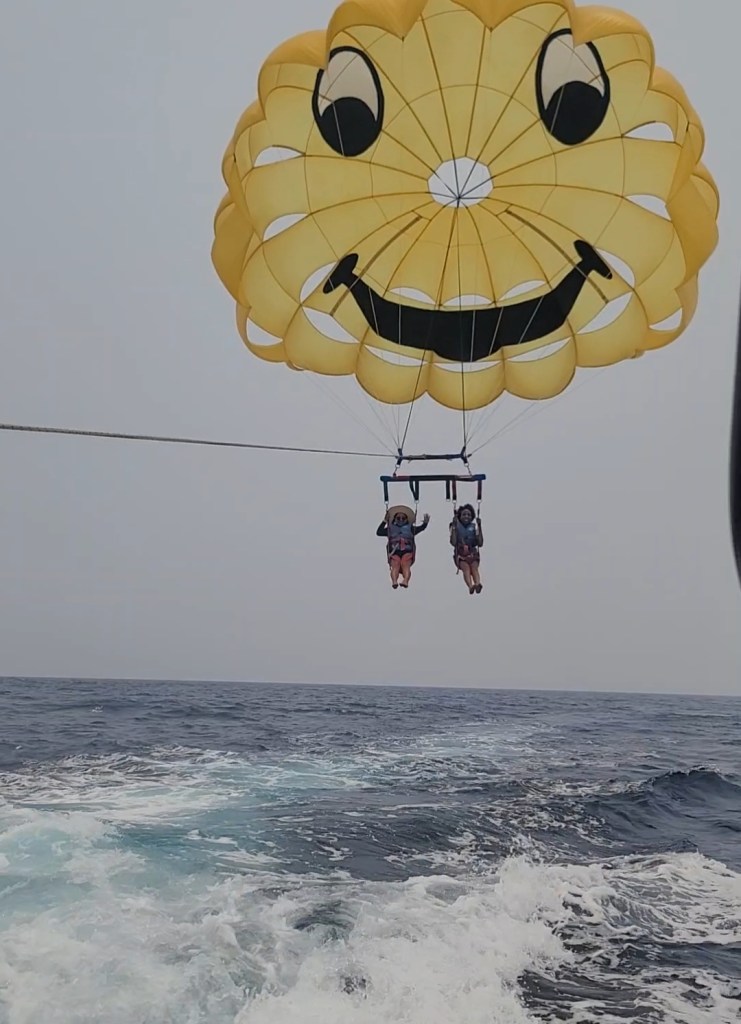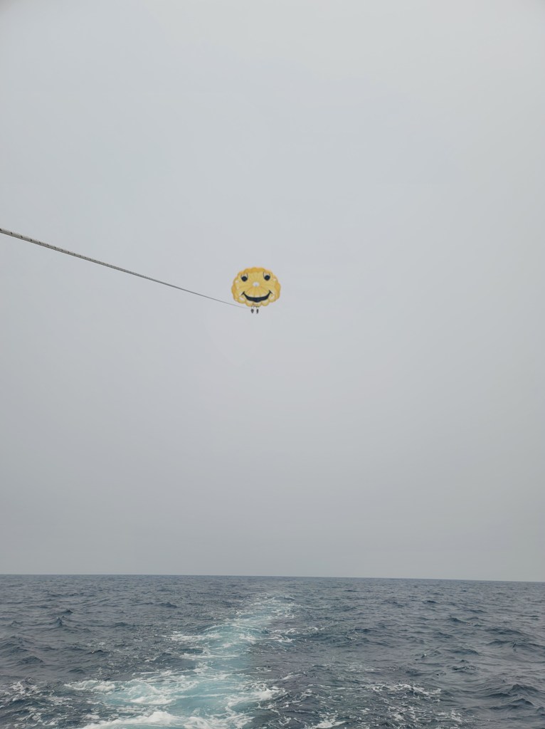 I met up with the guys doing the parasailing tour and was happy to see that someone else was doing it too. The lady didn’t speak English and was from Guatemala so I pulled out my Guatemala wallet to show her and she smiled and asked if I’d been to different cities so I told her where I went. She had a friend with her as moral support and we took off in the boat after being strapped in the safety gear needed for the activity. We went out in the water a bit and the music was on par until we got to a good point to get strapped and ready to be lifted up. All I could think of was this was it and how I’ve been wanting to do this for a long time. Thankfully one of the guys took photos and videos of me on my phone and we went up up and away.
