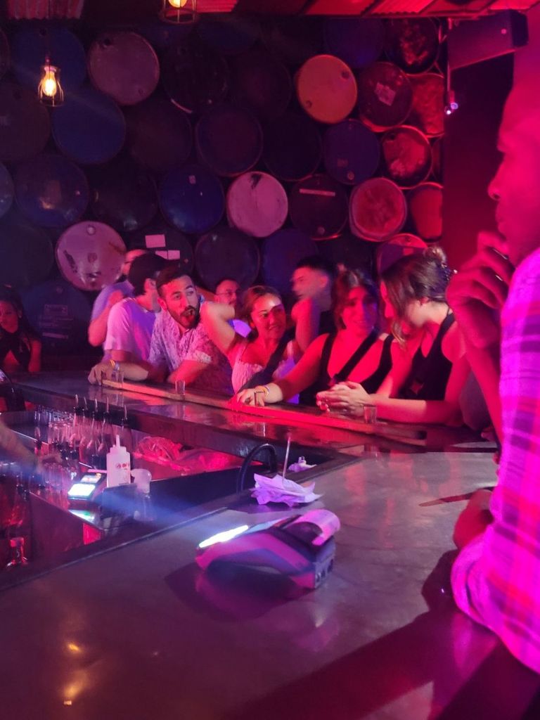 At La Ingrata there was nothing but shots, shots that came in the colors red, white and blue. I avoided all white shots for fear there may be coconut in it (I’m allergic) but indulged in the red and blue shots which were really good. After having two each 8 was four shots for me at that bar. The music seemed to be good everywhere we went and it was here that people began to dance and get loose. At the next bar Chupitos no drinks were included so my mom and I didn’t drink there but It was definitely entertaining seeing fire shots, penis shots, and helmet/knockout shots (see photos and videos).