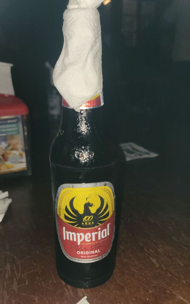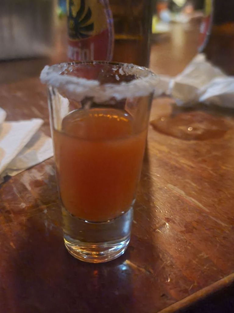 There were people there from Boston, California, Chicago, Minnesota, New York and more. We moved to a reserved area further back and were met with other groups coming in. It was here where we had a Costa Rican beer called, “The Imperial”. Now I’m not really a beer drinker so I drank half because beer makes me yawn and sleepy and I wanted to save room for shots (I gave my mom my other half of beer). I had four shots at the first bar Caccios one being a Cacique Guaro (Costa Rica’s sugarcane liquor) and three being the Chiliguaro (a Bloody Mary type shot with spice-it was so good). After hanging out here for a good amount of time we moved on to the next spot La Ingrata.
