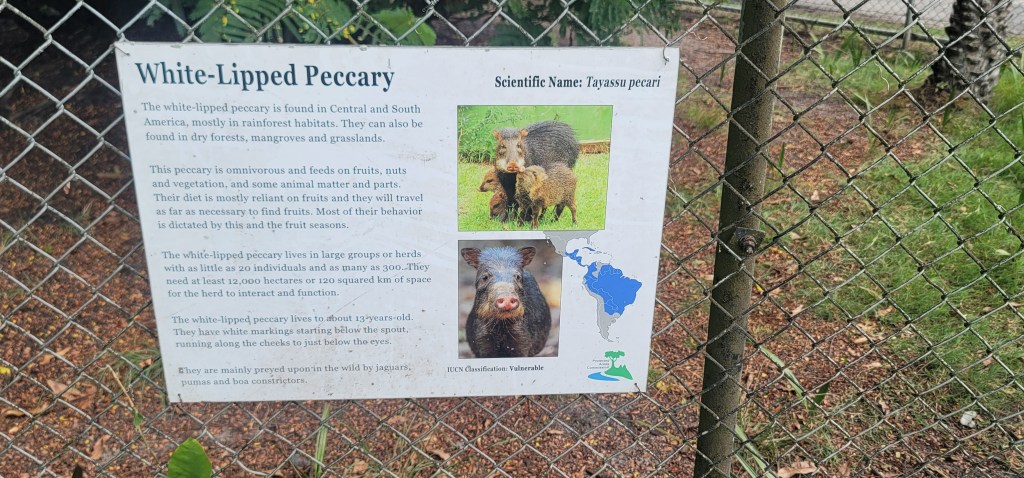- The White-Lipped Peccary-It’s the fact that it is over there in the mud under a tree knocked out. They are said to crave mostly fruit and will travel to get it. They stay in a herd from 20 to 300 and can live to be 13 years old (picture below)