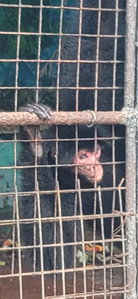 - The Brown Capuchin Monkey/Guianan Saki Monkey/Guianan Spider Monkey-I was able to capture this funny face from the Brown Capuchin (picture below) along with a cute video (below) of some smaller ones moving about. The little Guianan Saki Monkey was having a ball playing around with a small piece of clay and a ball today (video below). The Guianan Spider Monkey paced from corner to corner sometimes turning it’s head to look at you (picture below) and after pacing so many times reached up grabbed a rope and swung for all to see (video below).