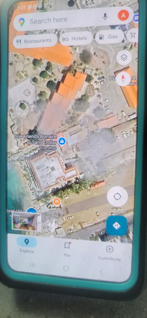 I chatted with her for awhile and she also got a to-go box for me. Before I left I told her I had to get a photo with her since she’s from the hometown, DC. I walked back to the car and headed for the Sand Dollar Bonaire location. Well here’s where things went left, I arrived at the Sand Dollar Resort and asked them where my class was taking place and they said I was in the wrong location and that I would have to go right before the roundabout and make a right and go all the way back. I did that and ran into a different dive shop called Scuba Do and the lady said I could come back if I didn’t find it (I had already prepaid so I needed to find it). I called them and they tried to direct me so since I passed a Bonaire Dive Shop store on the way to the Sand Dollar Resort I just went there to get everything straightened out (of course by now I was late).