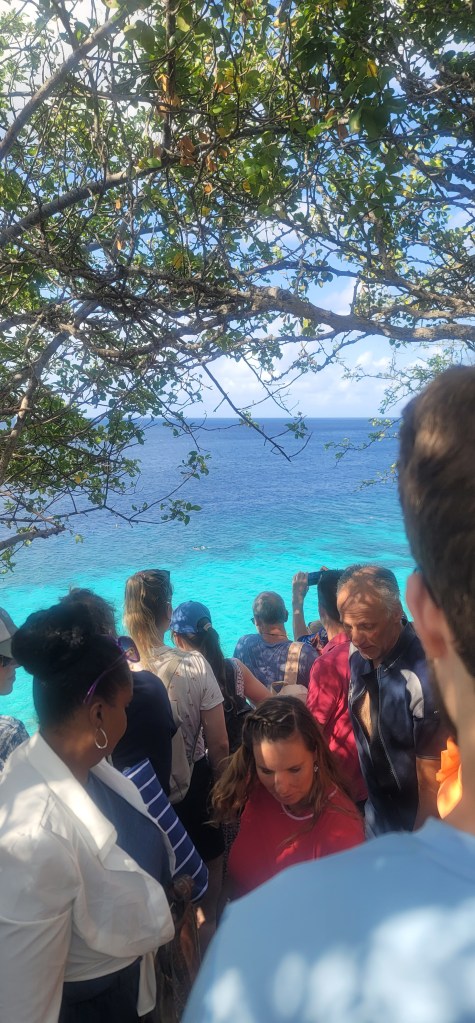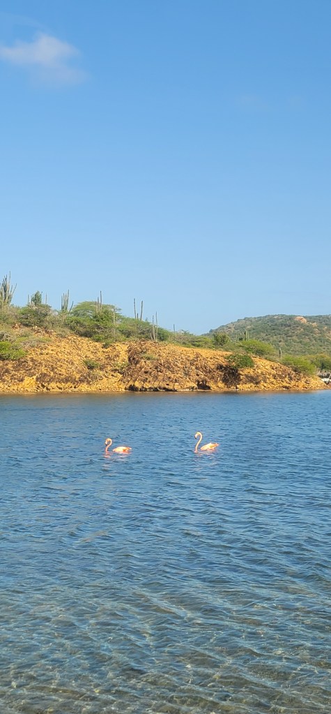 We passed a building where the slaves were were traded, a prison slaves were put in at the time and even stopped and visited 1000 steps where they often came up from ships (although I cannot seem to find more about this anywhere online). This area is off the Caribbean Sea and is known as a famous dive and snorkeling site. I took a moment to let my feet soak in the water (it was croweded in the area today). There are certain areas that are protected along the shoreline where no access is allowed and there are cameras hovering above. Next up we arrived at Gotomeer where in the distance we could see some flamingos but a further ride down gave us a better sighting.