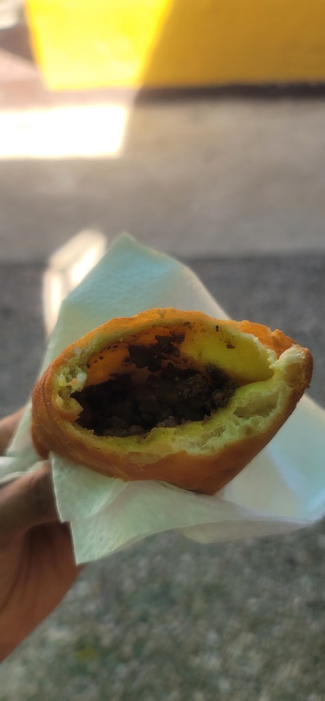 Afterwards I checked out what they had at the bar and I saw something like and empanada but it was a pastechi. After being told that they were good I didn’t need to be told twice as I was hungry and just asked how much they were (they were $3). I got the beef pastechi and it was good enough for me. As I was eating the German guy asked me how it was and I told him it was good so he said he was going to get one but our time was running out. I proceeded to wait in the van and eat and everyone came to join. The family from Trinidad were so disappointed that they missed the fact that could’ve gotten food inside (they were busy buying jewelry at the other tables). The German couple came eating their pastechi saying it was a good recommendation. (Onward now to the south side of the island as everything mentioned above happened on the north side). Below are some more facts I learned during the tour:
