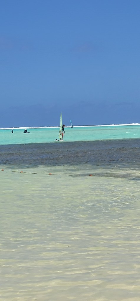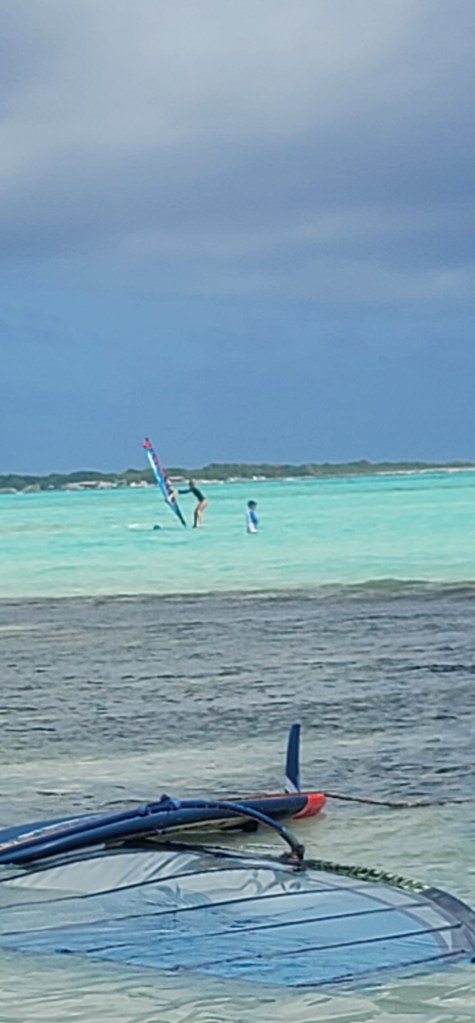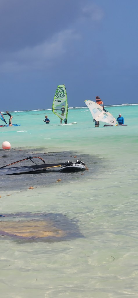 I can honestly say I spent a good deal of time navigating myself further out in the water as to avoid the restricted area which was closer inland and to the left. My first few attempts landed me in the very salty waters (sometimes even under the board or sail so I’d have to swim around them). When I did my 1st surf I felt so accomplished as I ended up learning with time the best method and stance that worked for me. We all checked on each other while out in the water and while everyone fell everyone also ended up getting a few surfs in.