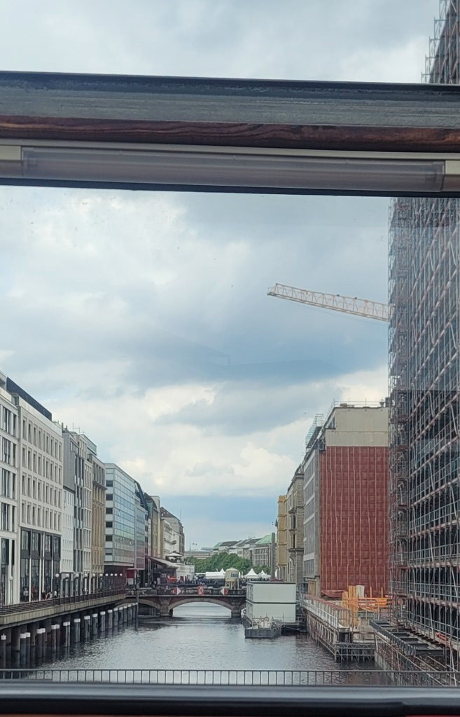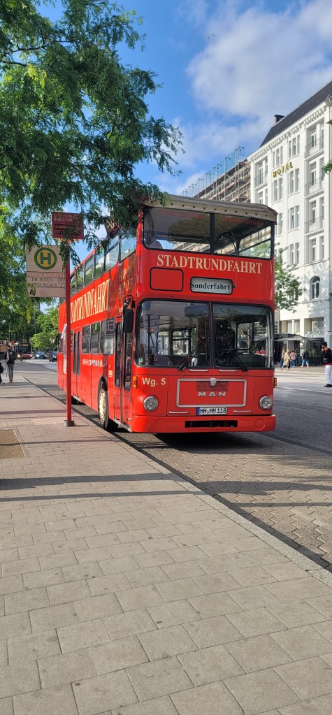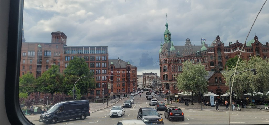 I only had to ride about 3 stops which basically put me at the train station I came in at yesterday (so I will definitely be using public transportation tomorrow bags and all) which is the main train station. Getting off the bus I saw a mix of different people from Arab, Muslim, African, Eritrean and more (I expected to see this more in Berlin). It was a busy day out and people were out and about at Hamburg’s busy central station. The wind was shipping and I was happy I wore my hoodie and jacket. I spotted the Hop On Hop Off Bus through Hamburger Stadtrundfahrt waiting at the station so I showed my ticket and went upstairs. It wasn’t too crowded which was good and I sat on the right side as the front was taken.