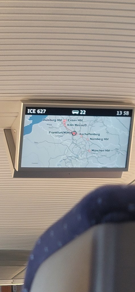 I ended up having to walk a good 15 minutes to get on the tram but it ended up taking me right across the street from the station. I arrived at the station a little after 1pm and the next train to Munich would arrive at 1:54pm on Platform 7. Thankfully there were empty seats on the platform so I sat and waited. Right on time the train pulled up and I found and took a 2nd class seat and thankfully had the row to myself. My plan during the journey to Munich was to maybe watch a quick podcast and listen to music and do this write-up. Well I did listen to music and once the train got going ate half of my flatbread had something to drink and I drifted off to sleep. I woke up twice but taking a nice little train nap was needed because of course I was tired, I barely slept last night.