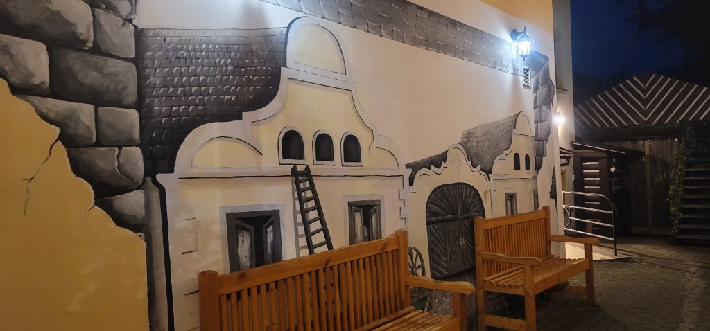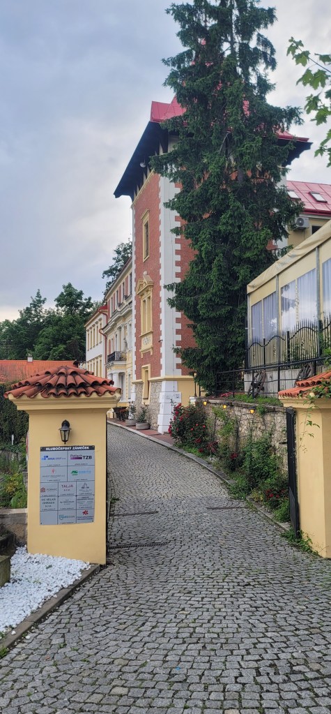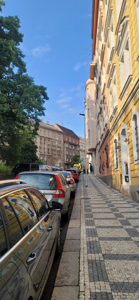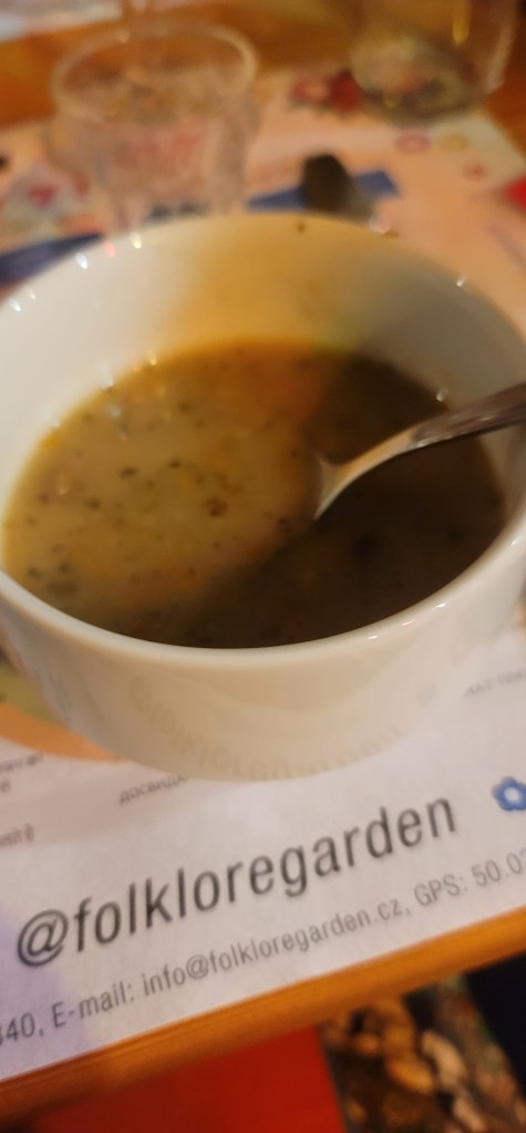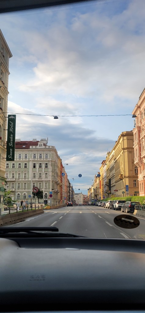I waited and waited and after 6:50 I messaged them reminding them that I was waiting at my meeting point. The tour company told me to wait until 7pm and if the driver hadn’t gotten there yet to message back and they’d handle it. Well around 6:55pm here comes the van scooping me up as I was the last pick-up to the 4 people (2 couples-one from Boston and the other from DC) that were already inside and off we went. The driver was nice in answering all the questions we had and telling us things about Czechia. We were all glad we had arranged for transportation because it was as though the dinner was taking place on the other side of town.