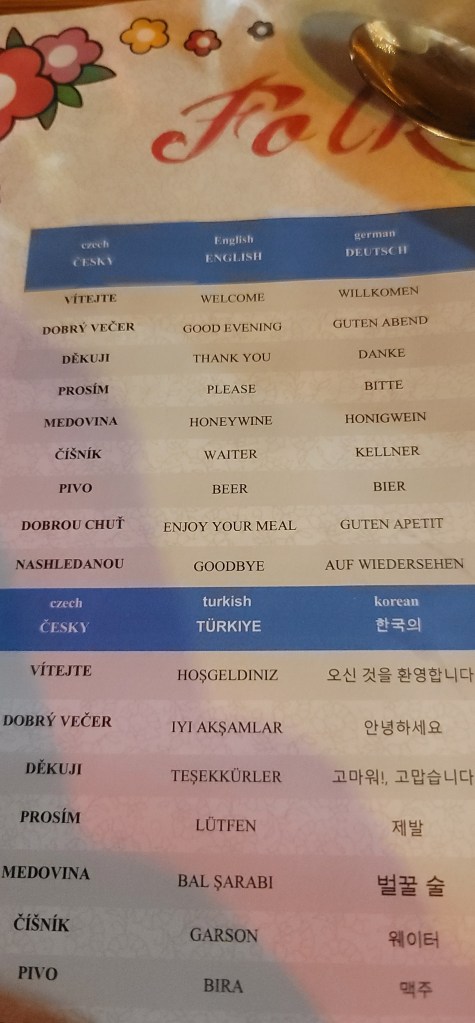 I would say I slept fairly alright last night. I didn’t have to get up for any activity so that allowed me to sleep in since the only activity I had today began at 7:30pm and that was a Prague: Folkloric Dinner Show with Unlimited Drinks. Slept in I did too as I didn’t really get myself up until noon and even after that I remained in the bed watching movies and what not. I ended up booking a guided electric trike tour of Prague for tomorrow versus a Big Bus tour/Hop On Hop Off tour (as I don’t want to be disappointed with one of those again, plus this was different and seemed exciting. I reached out to my Airbnb host to ask if I could leave my bags somewhere while I do my tours for tomorrow and thankfully she has a place in the building where I can lock my things up.
