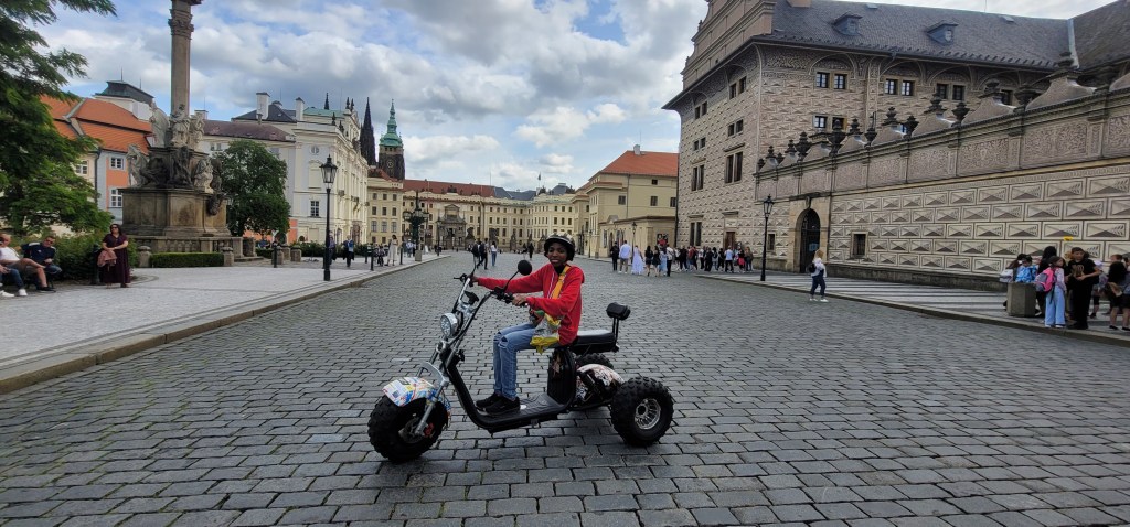 Oohh weee I woke up with an attitude because I didn’t get hardly any sleep. By the time I went to bed after packing it was 4am and around 6am was when doors started slamming and people were out and about outside (I can can hear them and the cars and they are loud). By the time it was time for me to get up at 7:40am I really didn’t want to. I also felt a little sore in my right knee and that’s the last thing I needed. Either yesterday or the day before I added a last minute activity for Prague and it was the Prague Guided Sightseeing Tour by Electric Trike.