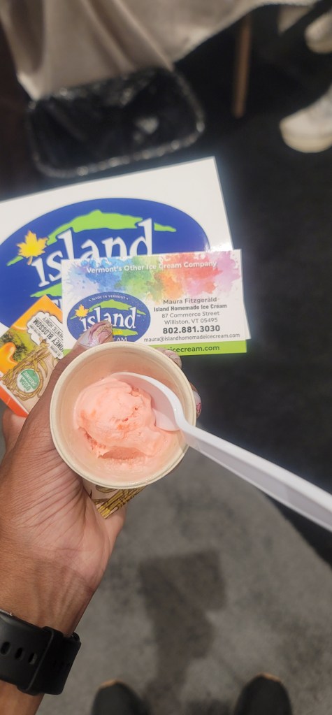 I initially wanted to do the River Pavillion first but I think with me being outside a bit longer waiting on the bus I opted to be indoors and the escalator leading down were right there so down the escalator I went. I was happy to see some beverage booths upon entering as I was thirsty (even though water stations were set-up throughout the floor). I first connected with Maura at Island Homemade Ice Cream where I tried some delicious Peppermint Stick ice cream and we got to know each other. She was such a delight to talk to and very intrigued as to what I do and my favorite travel places so I gave her my top 5 (in no particular order-London, Guatemala, Panama, Norway and Jordan). She told me to come back if I wanted more ice cream and I sure did the next day.