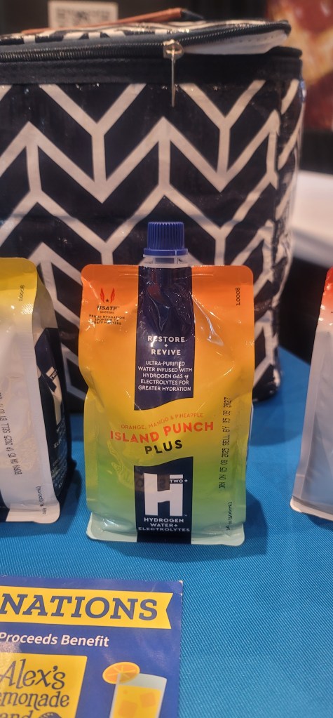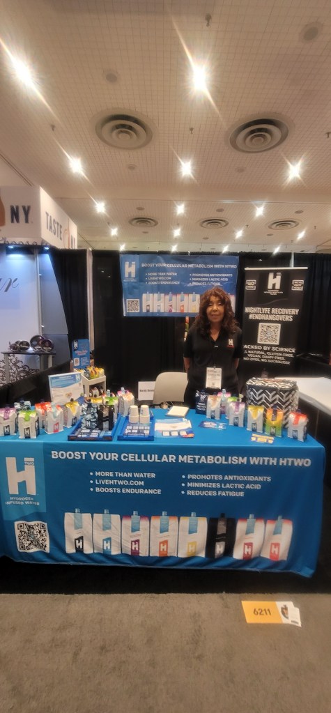 Now I won’t go into everyone I spoke with but will highlight the ones that I really connected with and the products I really enjoyed. The next best connection from day one was Carolyn over at Hydrogen Infused Water (HTWO). Black owned and women owned, Carolyn and I really connected and her hydrogen infused water was very good and refreshing. I liked everything from the packaging to the flavors and she told me all about it. I tried a few different samples my favorite being the Island Plus Punch (she gave me one to take) and it leaves you feeling very hydrated. (I ended up going back by day 2 to chat with her again).