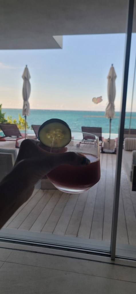 Once we arrived, we were picked up at the airport and we stopped by a local shop to get some alcohol and a pharmacy. As we arrived to the villa it was secluded and gated and we were greeted by the house manager Delroy. He had a welcome drink for us and told us where the rooms were. Three of the rooms were upstairs in the main house and one room was outside halfway down the steps to the beach. I knew that lone room needed to be for me and since it wasn’t the master room I called dibs. No one had an issue with it so that became my room. My sleep schedule is all over the place, I stay up late and get up early so it made sense to me.
