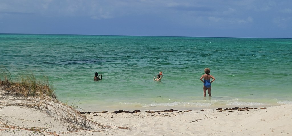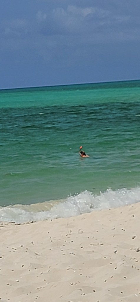 Once at Parrot Cay to me, after looking around I expected more (I was a bit disappointed). I guess I was expecting something grander but it seemed a bit low key and just overall for me underwhelming. We claimed some beach chairs and we all sprawled out (this is how I at least will be spending my time here). Ezgi and Lisa eventually got in the water and Auntie Cheryl dipped her feet in.