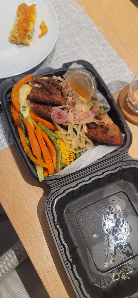 Back at the villa I revealed the actual cost and we dug into our food. Clearly we were looking at the wrong menu because there were some missing and incorrect sides. Nevertheless we had what we had and we went with it. The food was good (I got the fried lemon pepper snapper). After dinner Auntie Cheryl and I watched the rest of The Four Seasons episodes (three of them) and then we called it a night.