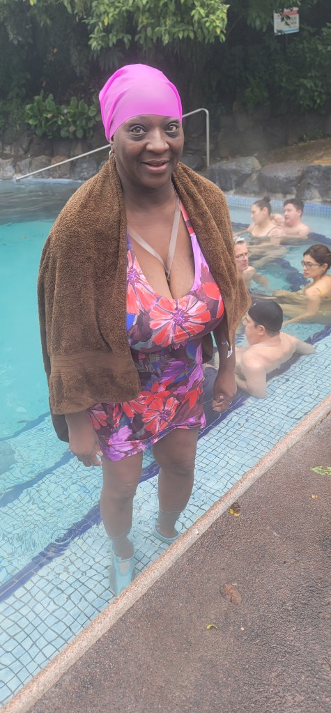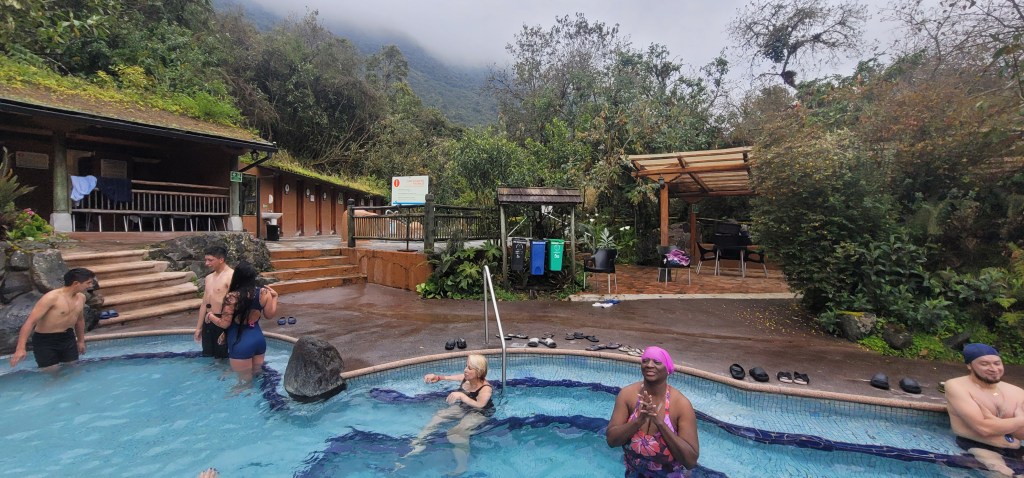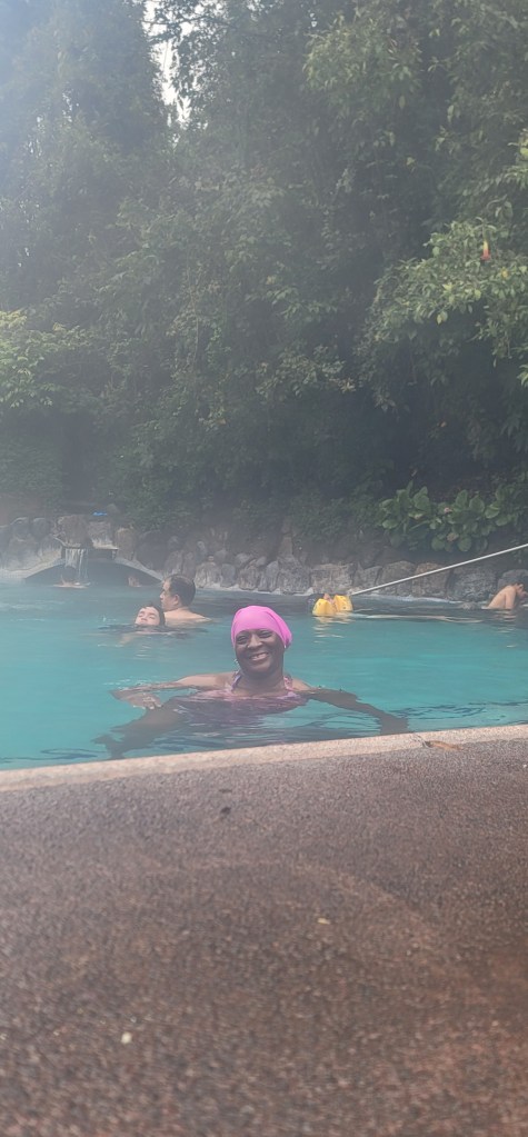 Now that that was settled we could enjoy the hot springs. We got our lockers and got out of our clothes and with our bathing suits under headed out to the hot springs. There were different pools som deep and shallow, some hot some cold and some big and some small. We enjoyed the different ranges of each for about a good two hours. We even did a cold plunge once or twice. It felt nice to be in warm temperature/hot water surrounded by volcanoes. We opted out of the hike portion to stay in the water longer.