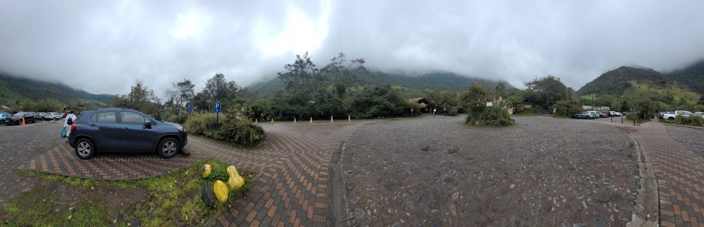 The weather and landscape changed as we went from one area through another. Quito was sunny but cool this morning when we were picked up, then while driving we came upon rain. After driving for a while we then came upon fog. The weather had drastically dropped from Quito’s 30°C to now 6°C. On our way there we did run into a road closure and had to turn around and go another way.