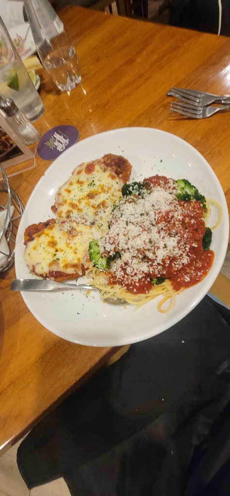 I personally hadn’t been to Olive Garden in about 5 years and forgot how much food they give you. We took the rest of our food home and on the way in stopped by a neighborhood gas station to get a cup of coffee and brownie for a quick breakfast snack tomorrow before going on our early morning tour. Back at the Airbnb we washed a load of clothes, took a shower, I went through the things I’ve bought so far and we called it a night because we have to get up early tomorrow and tomorrow is a long day.