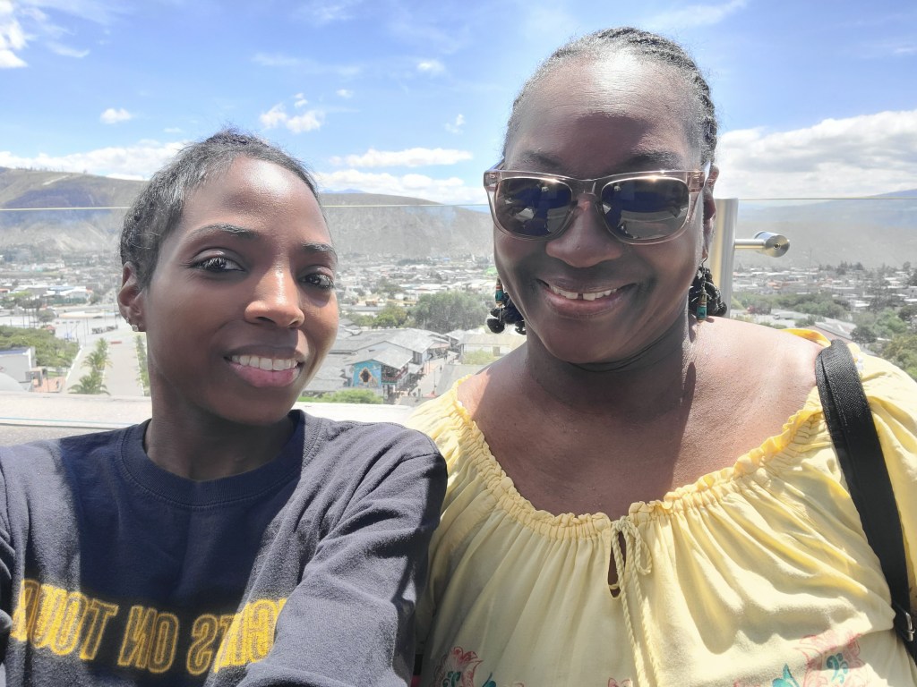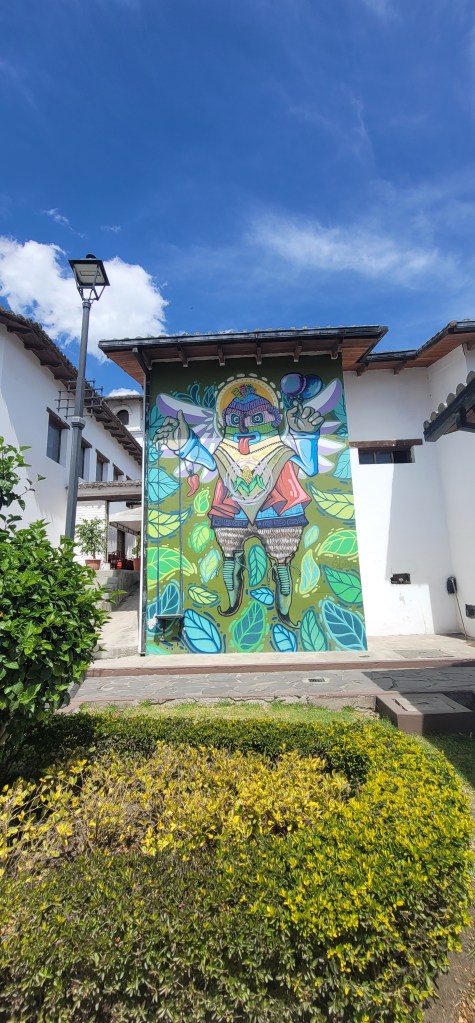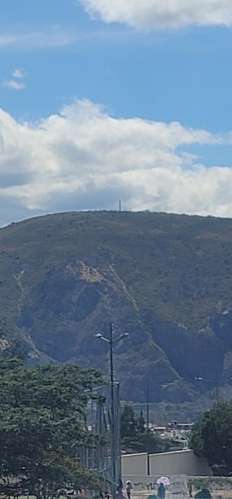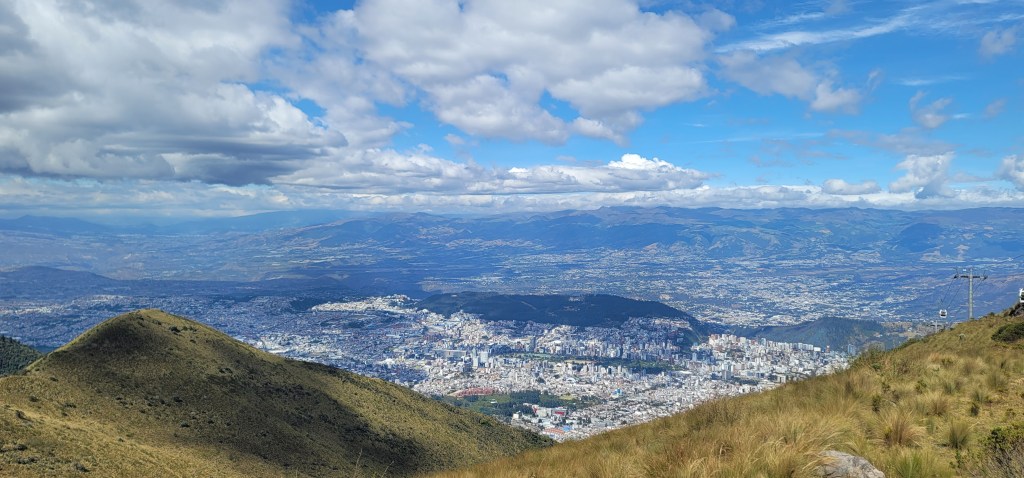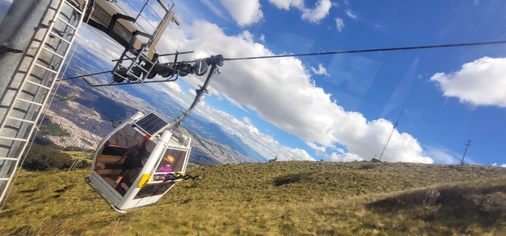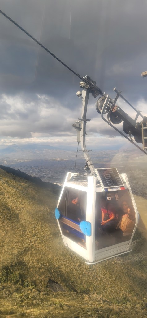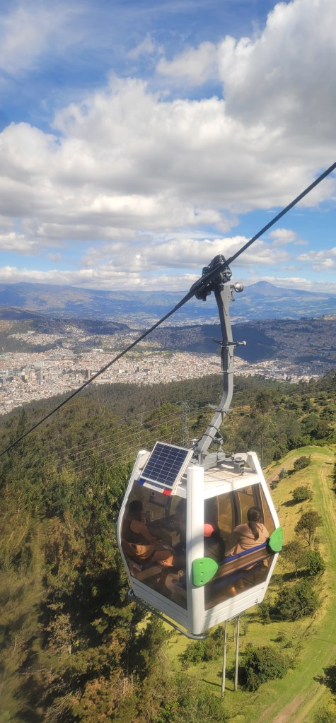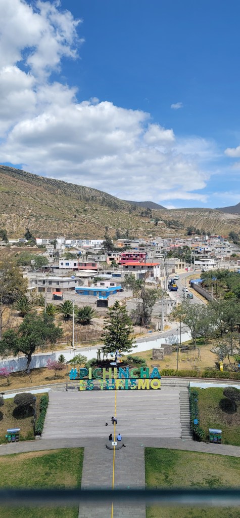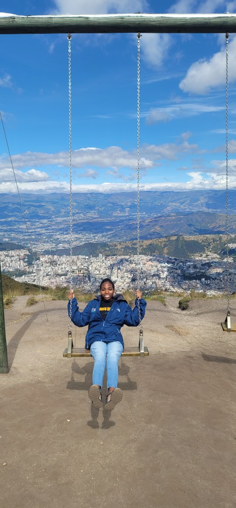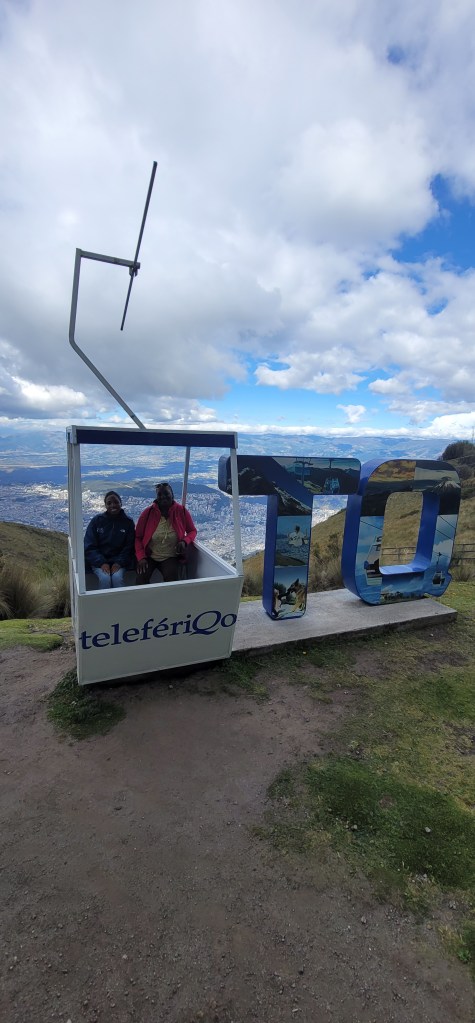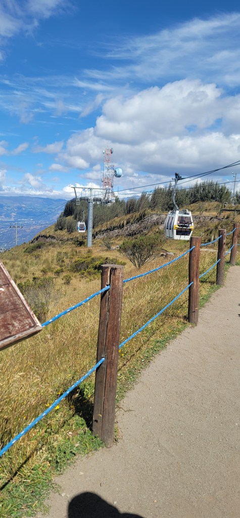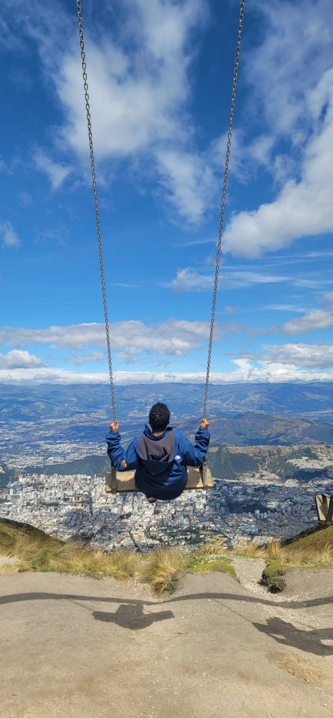 Today has been the hottest day since we’d been here but up on Pinchincha you got more of a breeze. Once we got off the cable car there was a cafe and an opportunity to hike up to higher points. My mom opted out of the hike and sat in the cafe and Andres and I went up a little further but not at the peak (because that was too far up for today). At the next viewpoint were swings for a photo op overlooking the city below and information on volcanos and the point in which we were at currently (there was also a dog park near the cafe). We spent a few minutes up there (I had to catch my breath from the hike and higher altitude, but was ok) and then went back down to the cafe. We took photos outside of the cafe to get some stunning views of the city on the volcano. Once done we headed back down via the cable car.
