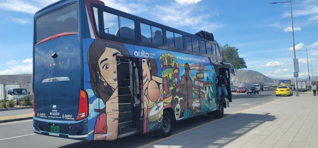As our trip to Quito, Ecuador comes to an end there were a couple of things that we must do before leaving. This morning at 9am we had a reservation for the Tour Mitad del Mundo (aka Middle of the World Tour) on a Quito double decker tour bus. We were to meet up in the Carolina Park area about 15 minutes before. Because Carolina Park is close enough to us we were able to just walk there vs taking the bus. Although we already purchased tickets we arrived to a line at the registration booth (which yo need to visit before getting on the bus to get wristbands and information). The tour guide Adrian informed that they would wait until we were done.