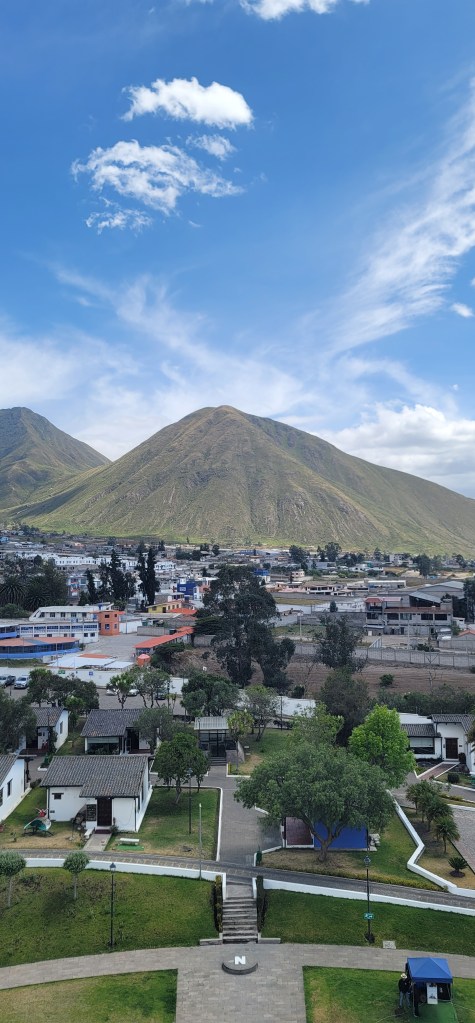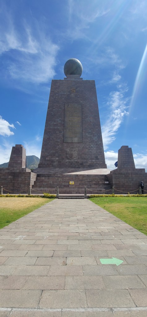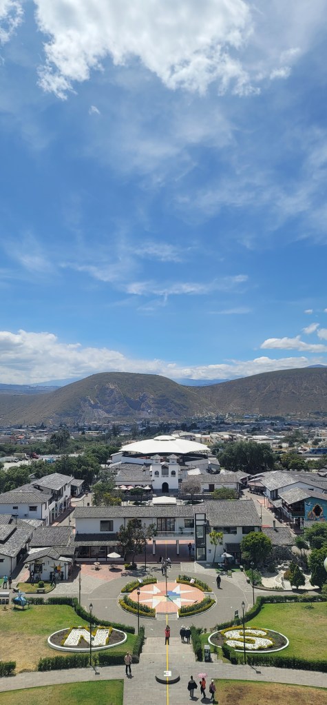 At Mitad del Mundo there was quite a bit to get into and the photo opportunities were everywhere you turned around. Of course the main attraction is the big equator statue that’s in alignment with the actual marking, showcasing all four sides, north, east, south and west. We spent the majority of our time walking around and taking pictures. Of course we got all four sides and were even able to go inside and up (all the way up, we were under the ball at the top) and up there was a viewpoint of the area and neighborhood below from all sides. We took a moment to take it all in.