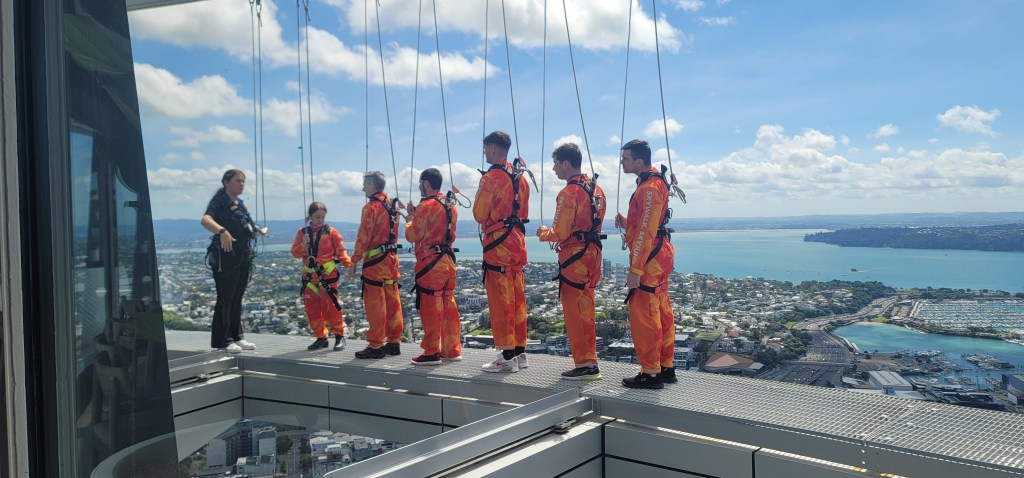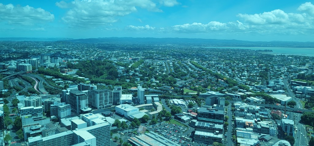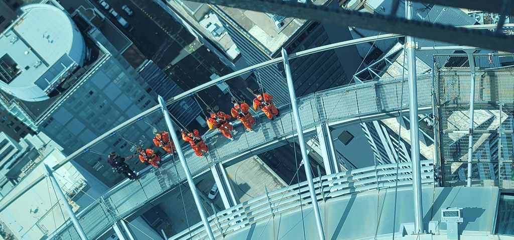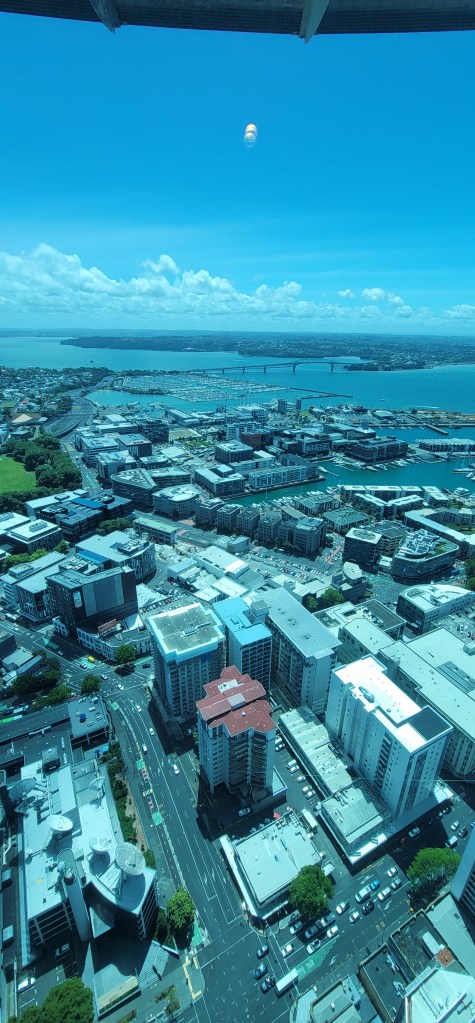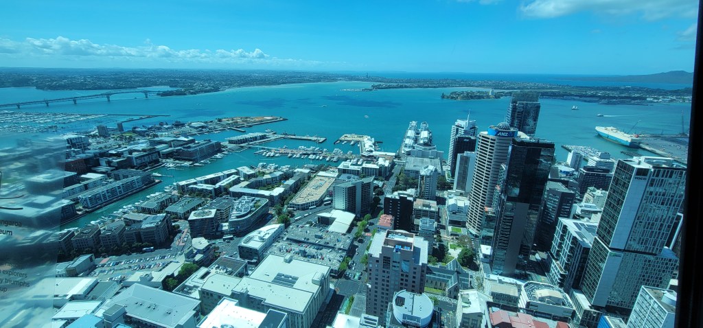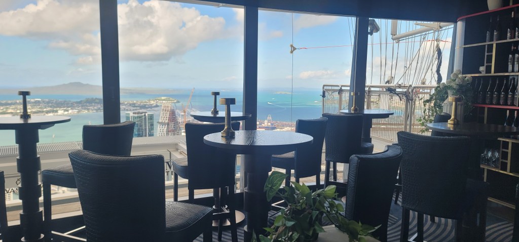 After the 51st floor they take you to the 60th floor which after doing the 51st floor isn’t so bad. We got a few videos and pictures a little higher up and then headed to the 53rd floor where the bar/cafe was. We sat and each enjoyed a drink while taking in the views. From this level you could see a group outside doing the Sky Walk as they walked around the Sky Tower on a harness.