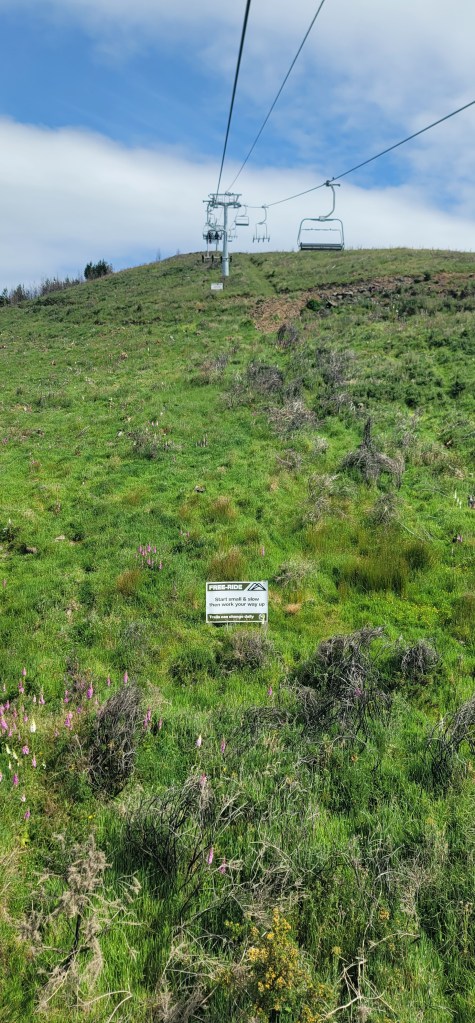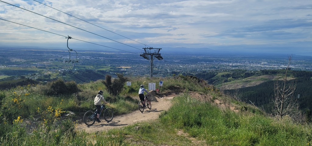 Christchurch Adventure Park has quite a few things going on from biking, hiking trails, ziplining and the chair lift. We ushered ourself up to the chairlift area after dropping off our grocery bag at the cafe and we were up up and away. Here they have lifts for people to sit in as well as lifts to put just your bikes on. As we sat and looked ahead and to the side of us the views were beautiful. There were times where the lift had a bit of a bump to it and I clinched my phone the entire time because if it fell it would be a long and hard fall.