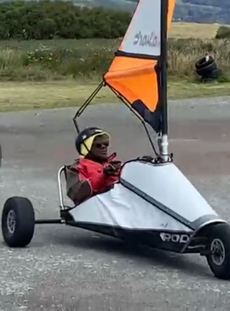 We ordered an Uber there but it wasn’t far just an 8 minute ride away. When we arrived we seemed to be the first ones there and weren’t sure if there’s be anyone joining us. Two other couples, one old and one young ended up joining as well. We signed in and were given gloves and a helmet to wear. It’s a good thing everyone had their own shades (they’d provide them if you didn’t) because the track can be windy (which by the way is the whole purpose of land-sailing-the wind fuels the sail).