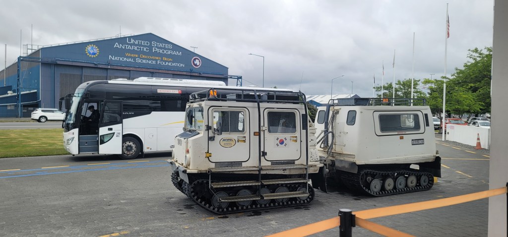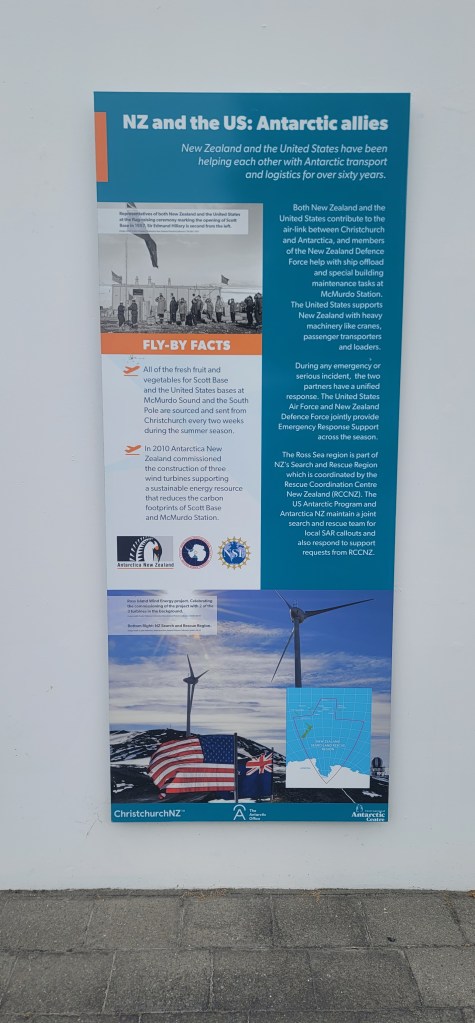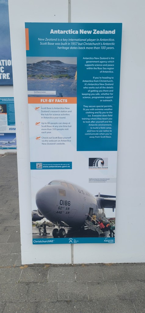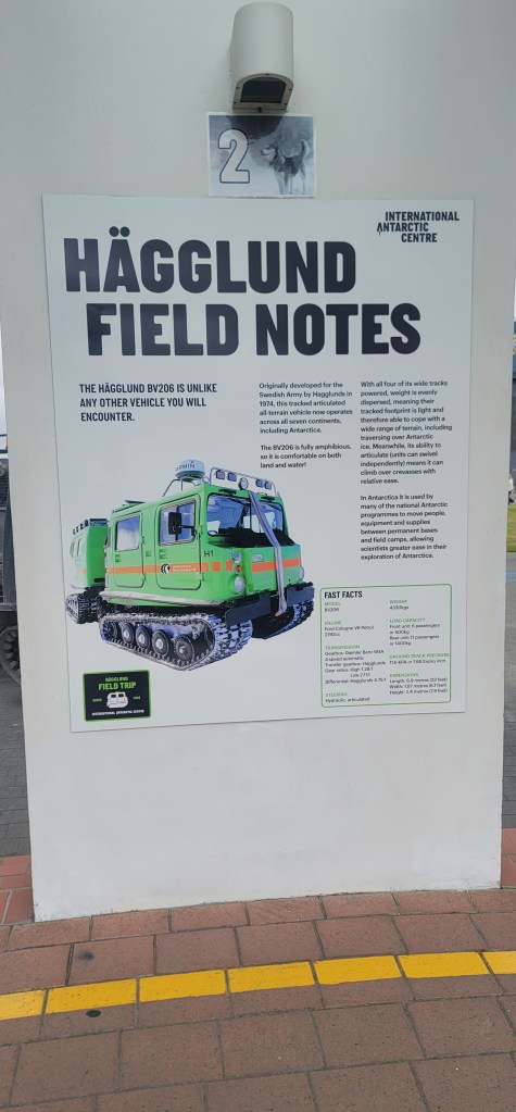 We agreed, whatever would give us the best views as we had no other plans scheduled for the day as we had deemed this “helicopter day”. Karen (one of the employees) suggested to pass the time to visit the International Antartic Centre. We agreed and she thankfully gave us a ride over there (it was about 2 miles away). After securing tickets for 2 adults we wandered through the gift shop until it was time to experience what it’s like to ride in a hägglund (an all terrain vehicle used to navigate through Antartica’s harsh weather conditions).
