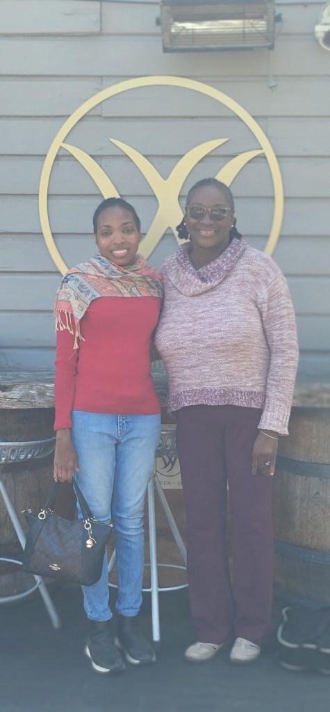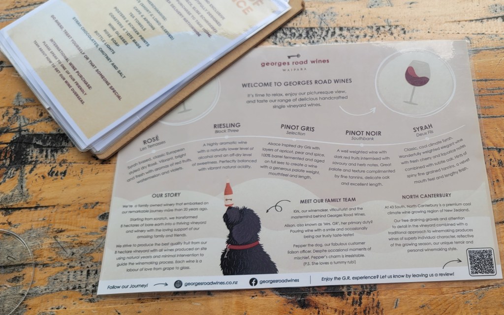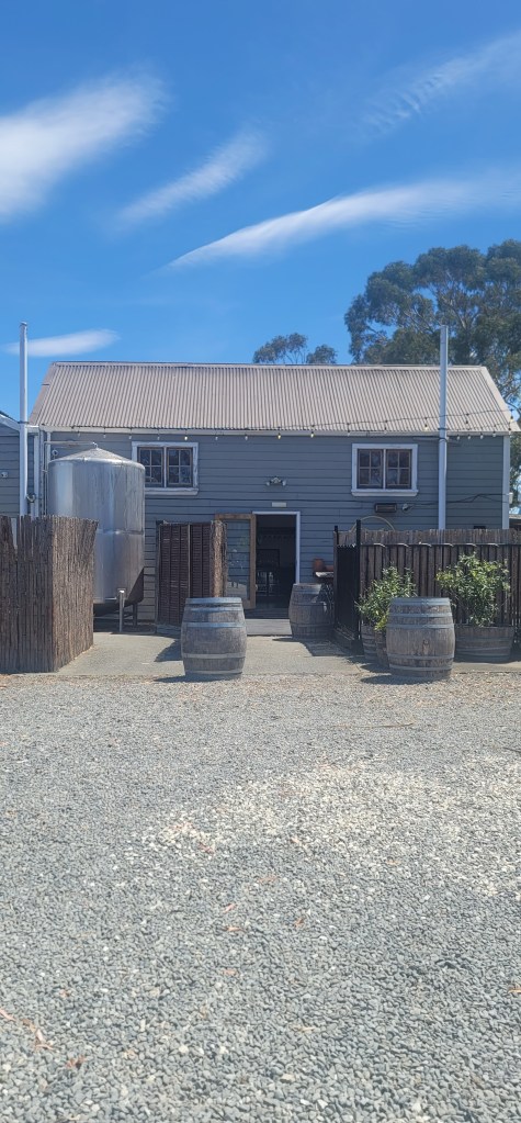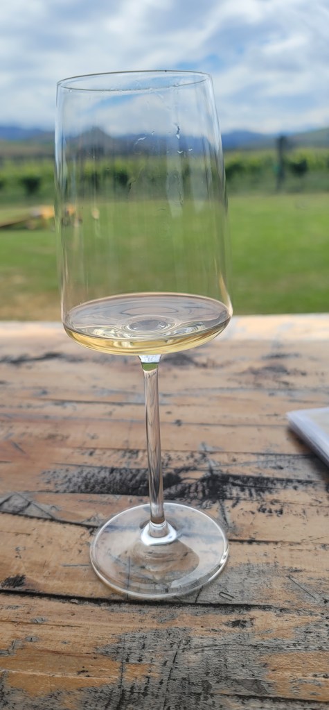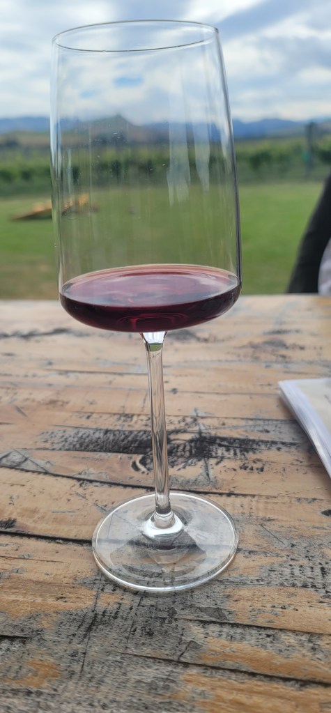 When we were done there it was just a quick drive over to the next one called Georges Road Wines which was situated with the most beautiful background-the vineyard and the hills. Looking around one would think you’re in Italy because it just gave off that vibe/feeling. This location had a furry dog friend named Pepper who eventually came out to greet everyone and get some rubs. They also had a bean bag toss game that I indulged in while there because why not. Here we tried a Rosé, Riesling, Pinot Gris, Pinot Noir and a Syrah (my favorite was the Pinto Gris and my mom liked the Riesling.)