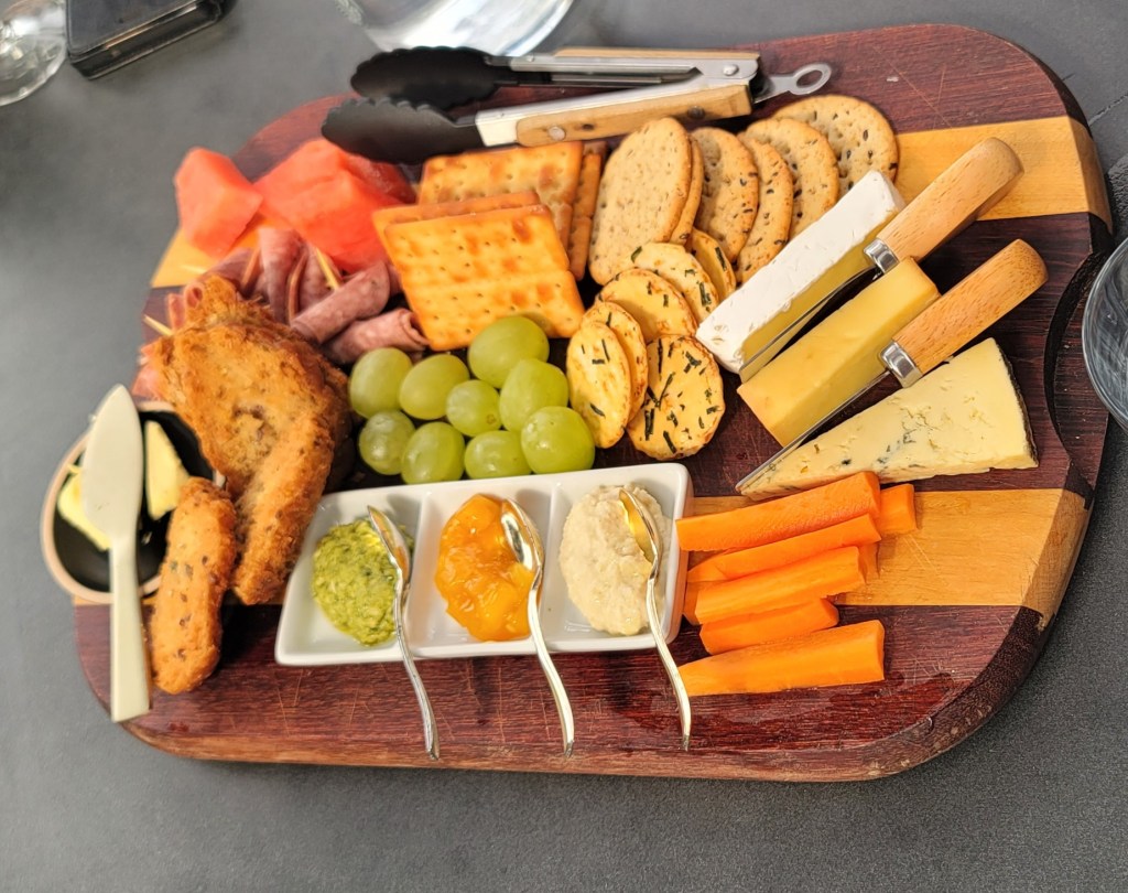 Our last and final stop once we were left there was Torlesse Wines. Although we had already had our lunch at the 1st stop by now I was hungry again and ended up ordering a charcuterie tray (because it was so big and so much I shared it with everyone at the table because I wouldn’t have been able to eat all of it). The wine here seemed like it wouldn’t stop coming as glass after glass kept getting refilled with something new and at times we had a choice of what we wanted to try. I ended up liking one wine called the Albarino (it’s a white wine) and though the mix escapes me it left enough of an impression for me to buy a bottle.