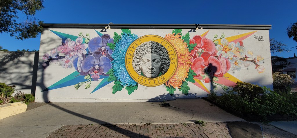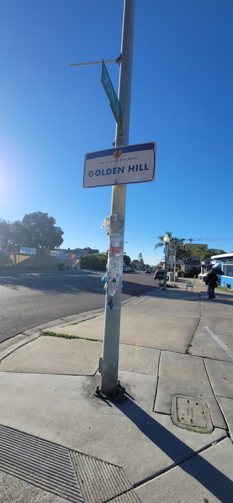 After walking about 20 minutes I made the decision that I was just going to walk the entire route as I hadn’t yet seen the bus pass by and since I would have to some point get off and walk anyway let’s just see the city as I walk. San Diego has a lot of hill like streets going up and down and I passed by quite a few homeless people. So many people were up and out walking their dogs and I couldn’t blame them because the weather was nice for it (50’s at that time of morning).