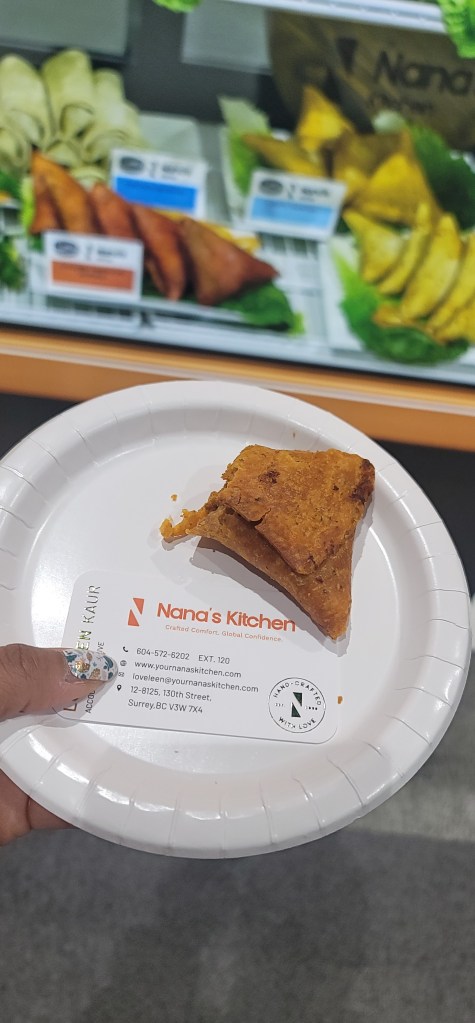 I hustled my things outside and called an Uber. Luckily before leaving I passed an exhibitor that was giving away dumplings and chicken bites so I loaded up in my to go container.