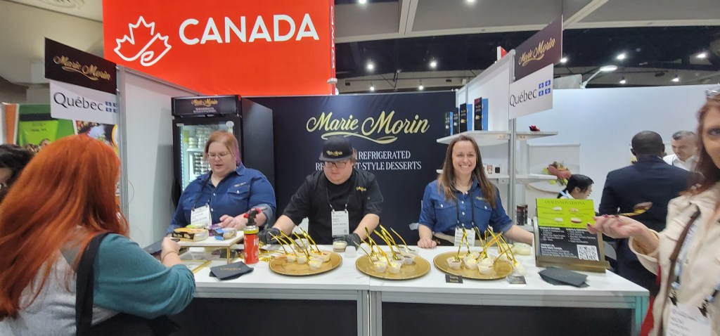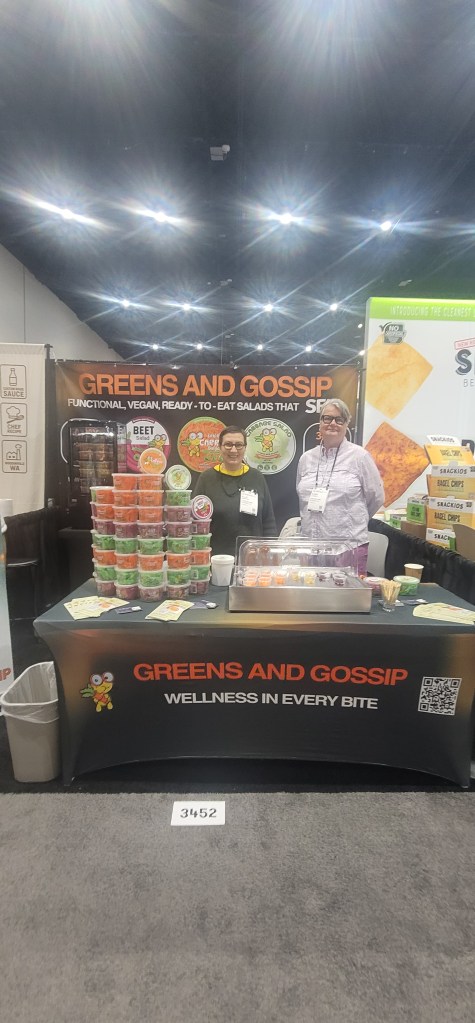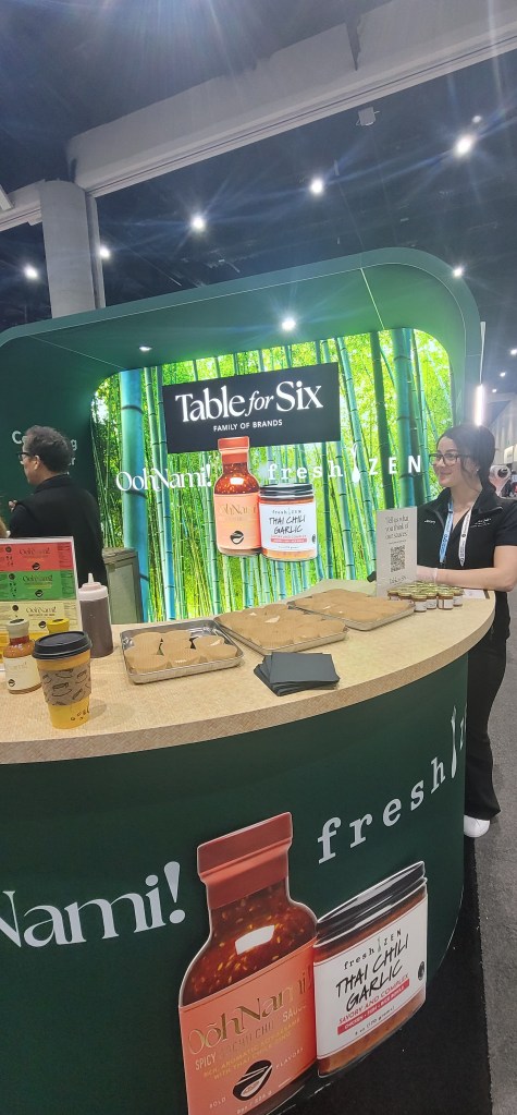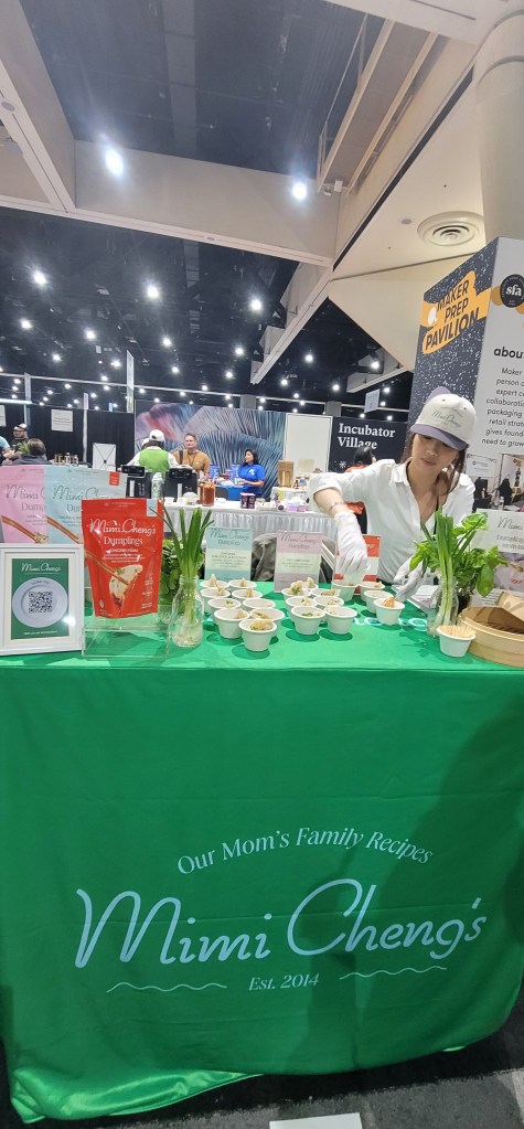 I tried a Portuguese egg tart which was delicious (even though I’m not a fan of eggs) and had a yummy ginseng energy drink. Just when I thought I already had my favorite coffee here Kea Wellness gave me a coffee latte with collagen that was divine. I ate and drank my way through the show and ended up with a heavier bag today versus yesterday. I was stopped so many times and was asked where I got a big orange see through bag here.