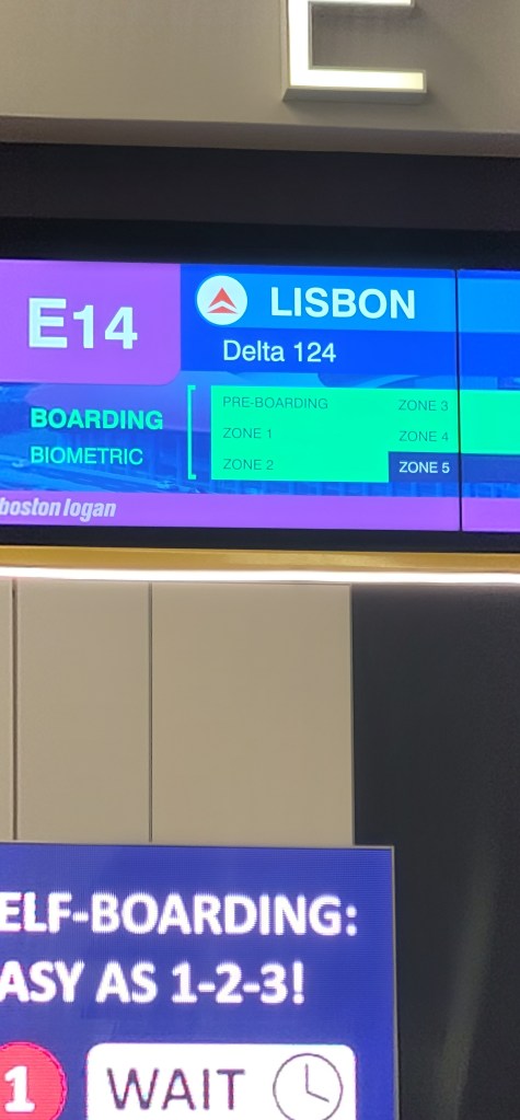 Once in Boston they had a shuttle transport myself and others to a different concourse for international departures (the shuttle was like a people mover at Dulles). I made it to my gate and ate the food I brought with me and charged my phone (which is good because I am still doing no cheese while on lent and most of the airplane food options had cheese in/on it). The flight to Lisbon from Boston was exactly 6 hours and I slept and watched Sarah’s Oil and a documentary on Alabama’s Prisons (the plane was packed but thankfully I had an aisle seat).