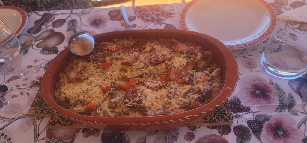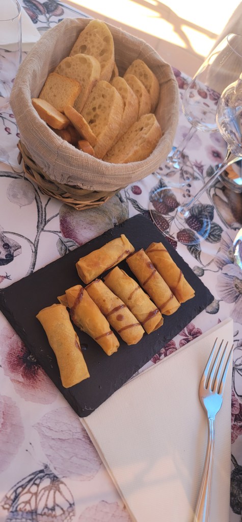 We had quite an array of snacks from smoked meat, cheese (not me because of lent-my substitute though was marmalada and it tasted like a healthy fruit rollup. Along with that were mini spring rolls, bread, salad, soup, this very tasty duck and rice dish and creme brulee for dessert. Everything was delicious and we ate it all so much so that there was an entire extra tray that they brought out of the duck dish which no one touched because by now we were all full. I definitely asked if I could get that to go and they did in fact pack it up and give it to me. That would definitely end up being dinner later.