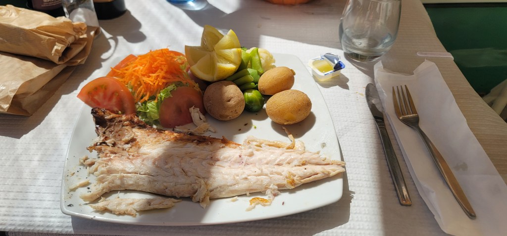 The town is right near the beach and is a quiet out of the way area. It’s here somewhere that I’d grab lunch which I did. Miguel said the area is known for its seafood so that’s what I got (a sea bass meal). I had a good 2 hours in the area so I was able to sit, eat, relax and take my time which is probably a good thing because I got full off of the food but I ate every bit of it at Praia Mar. Afterwards I walked along the beach and popped in a few stores before meeting back up with Miguel.