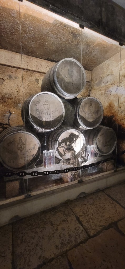 This too is another vineyard in which there is space for events and weddings. There were 3 different cellars that we toured some with the biggest wooden barrels I’d ever seen and their were just aisle of them. We even got to see where the familly keeps their own personal collection. Their moscatel they mix with a bit of brandy and I got a chance to try it when we did the tastings (paired with crackers) and it wasn’t as sweet as the other one but it was smoother. The other wine tasting we tried was a red wine which was good as well. The prices for the bottles again were quite reasonable. They had a moscatel fig sampler of 6 that were reasonably priced with interesting flavor profiles and because they’re small enough to fit in my carry-on I got it and can’t wait to try some.