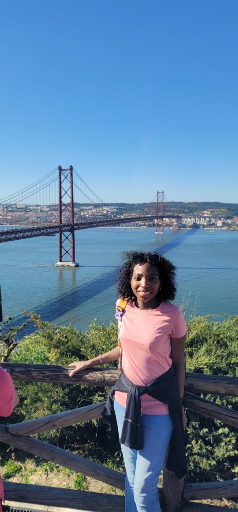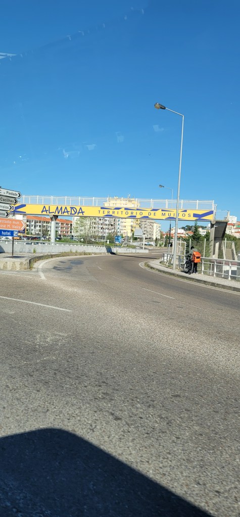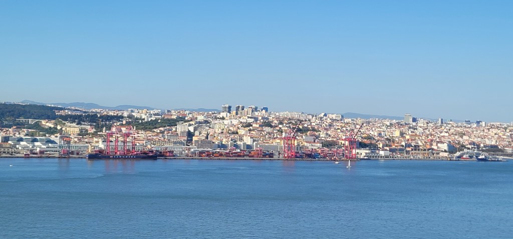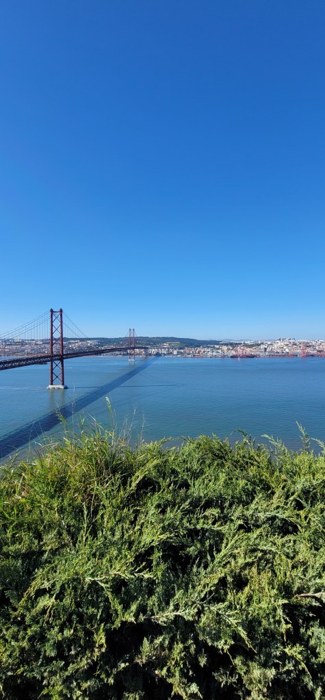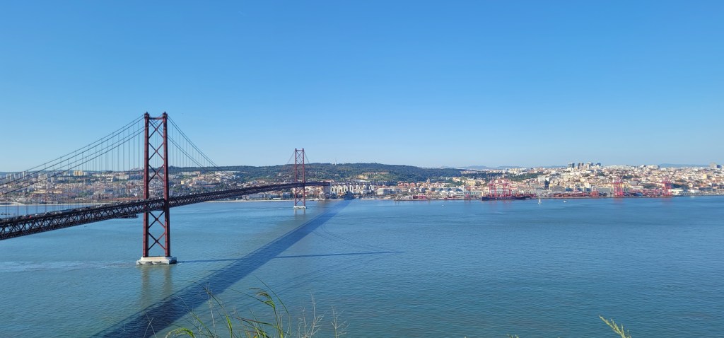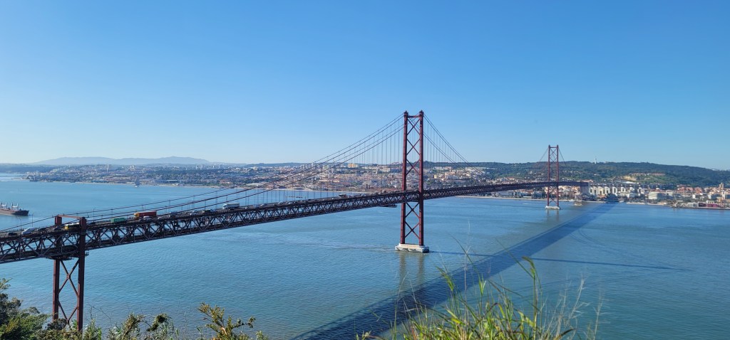 Miguel showed up soon afterward and said that it would indeed just be me today and that the first thing we would do is cross the April 25th Bridge which very much resembles the Golden Gate Bridge in San Francisco, CA. The bridge was built from 1960-1966 and the differences between the two are that this bridge is taller because cruise ships need to be able to pass underneath. The bridge is also not as long as the Golden Gate Bridge and there is no option for pedestrains to walk across (it isn’t allowed). I haven’t been to San Francisco yet to see that bridge but I can say that I got a chance to see and go across a replica here in Portugal.