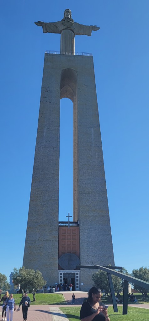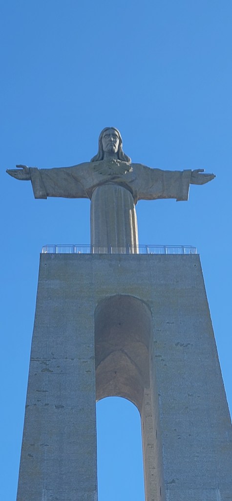 Our last and final stop of the day was to see the Christ Redeemer statue and Miguel said it offers one of the best views of Lisbon. It wasn’t too crowded by the time we arrived and Miguel gave me some context of how the statue came to be. Basically a king told 4 cardinals at the time that if he was able to keep Portugal neutral in a war that as a reward he would have something built. That same king admired the Christ the Redeemer statue in Brazil and had a replica built (which is a smaller one, details of the emblem on the chest are unique to Portugal and it’s atop 4 pillars one representing each cardinal). The statue is elevated on the pillars facing Lisbon as a, “Welcome to Lisbon.”