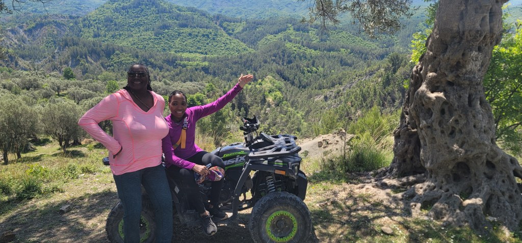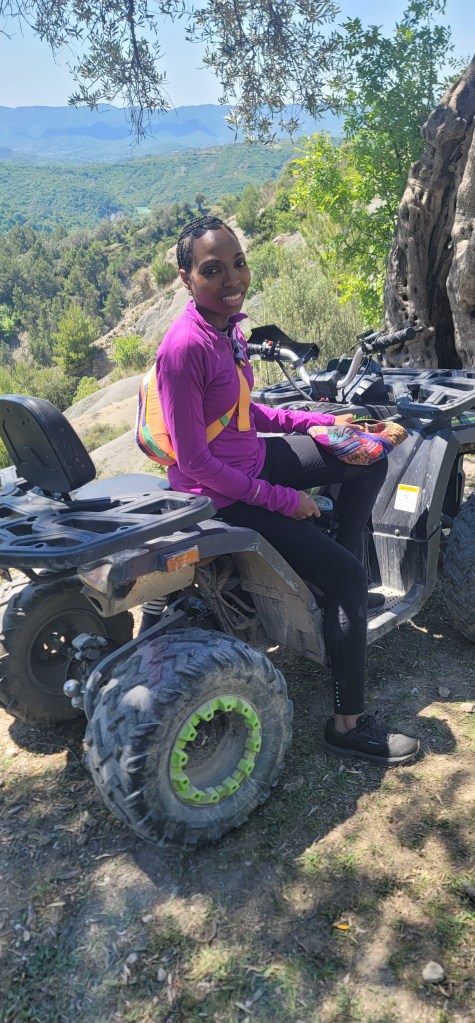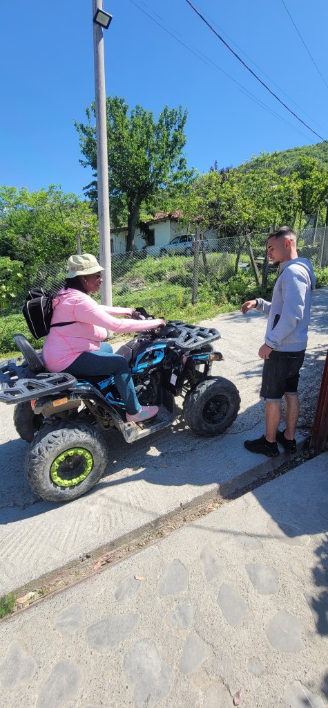 We had some leftovers from dinner last night for breakfast and then we walked to the Discover Albania office. There we met our guide who took us to a taxi and we rode off up into the mountains. We ended up in a backyard shop with quad bikes all around and were told we are waiting on 2 more people. While we waited, our guide Trek showed us how to operate the ATVs and watched as my mom and I did a test drive. By that point the 2 other girls showed up who were from East London.
