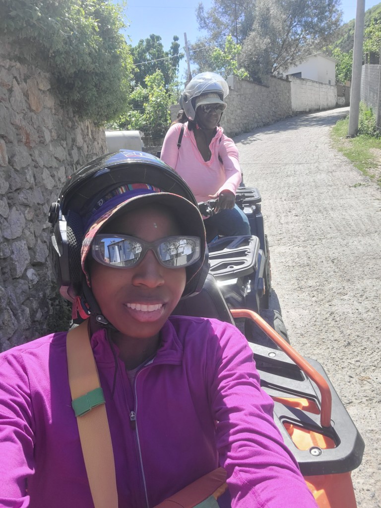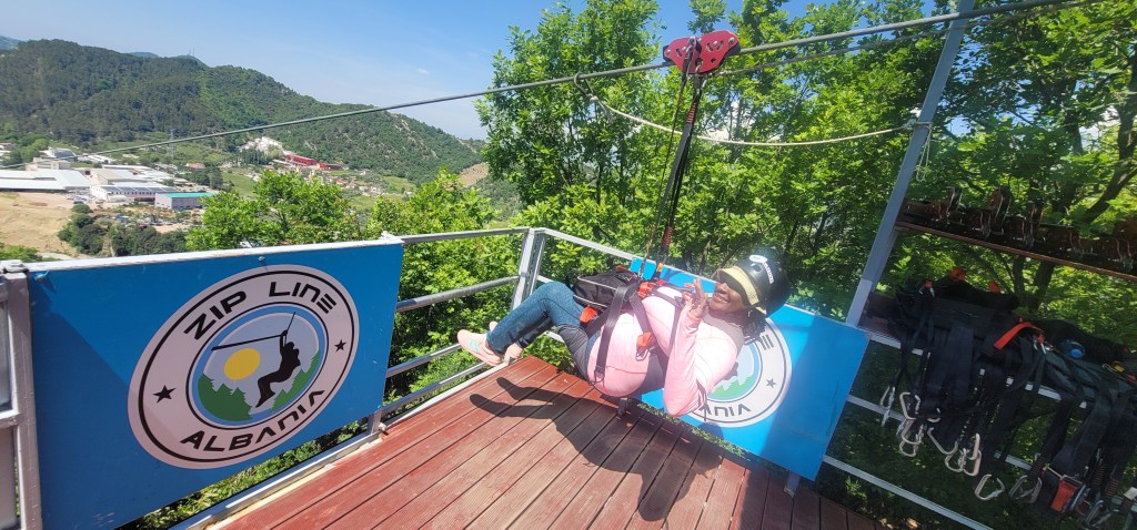 After our ATV ride we hopped in Trek’s car and he drove us the short ride to Albania Zipline. The girls from England went first and I let my mom go before me so I could record her going. After we had arrived it got really busy with people coming in that they had a waiting time. One woman was trying her best to push for one of her young sons to do it but the operator told her the boy was too small. A group of girls from Nigeria arrived but also had to wait.